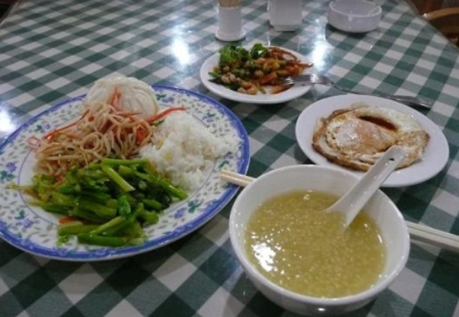 勝利広場から大連駅に向かって線路沿いを右側に向かい足元のひどい道路を歩いていくと、だいたい10分弱で右側にあります。玄関前にタクシーがいつもいるというのとは程遠く、警察署の前を通って大通りに出るとつかまえることができます。この辺りは夜の一人歩きは薄気味悪いです。朝食はローカルフードのみです、シャンツァイが嫌いな人には地獄だと思います。