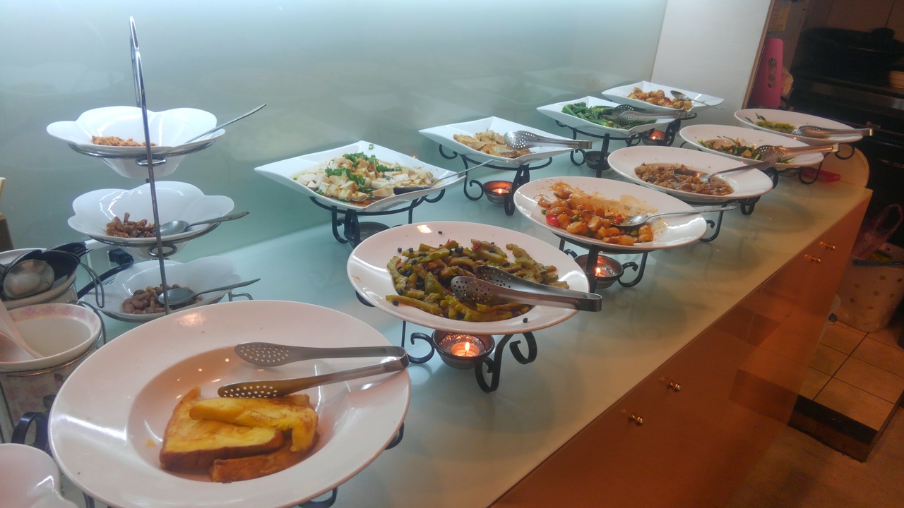 格安なのに手作り台湾料理朝食付き、いろんなものをトッピングして食べたお粥は美味しかった!