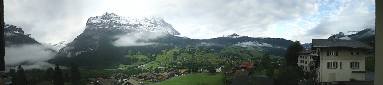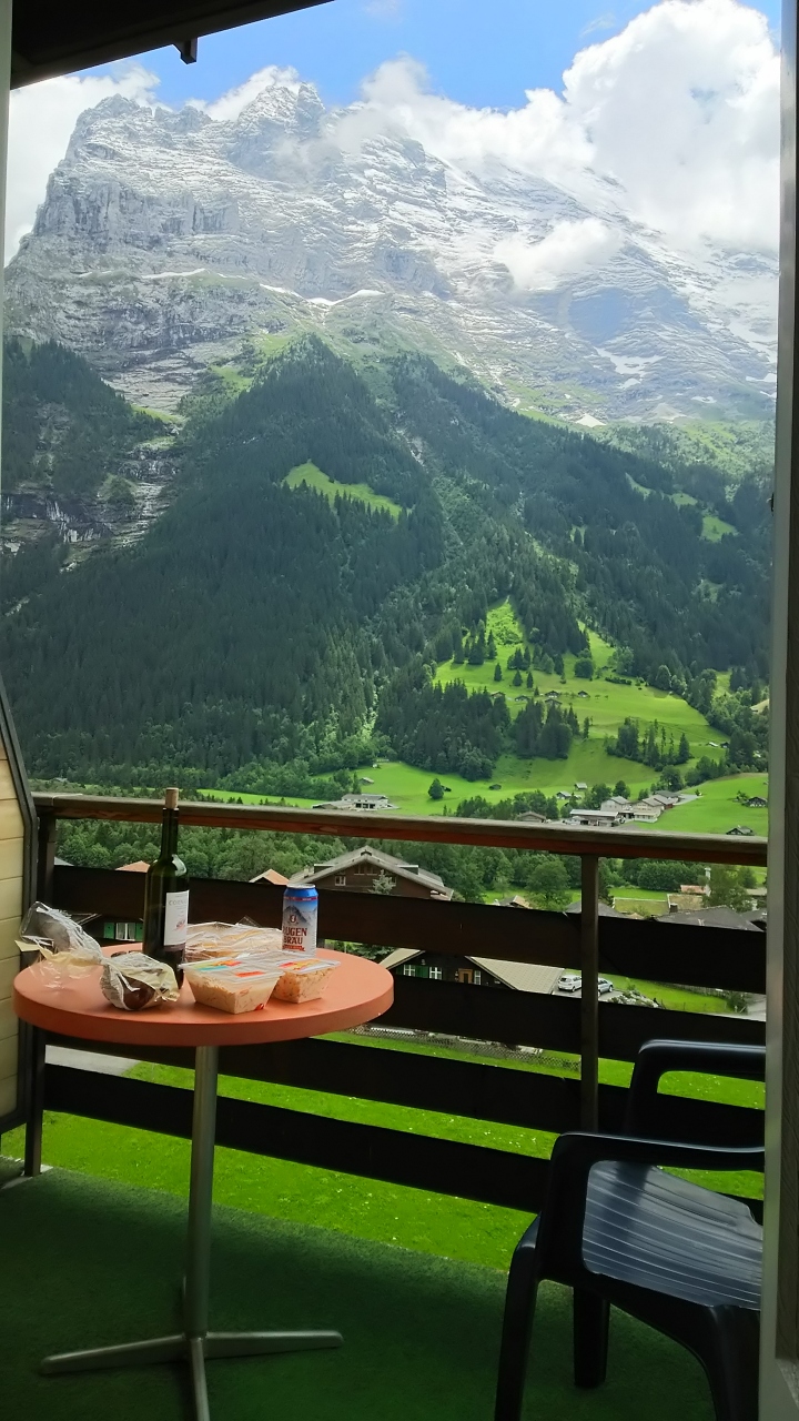 なんといっても、天気が良ければアイガービューで、悪くてもこのスイスの牧歌的な風景(後日、晴れた日の景色を掲載します)を見渡すことができます♪
