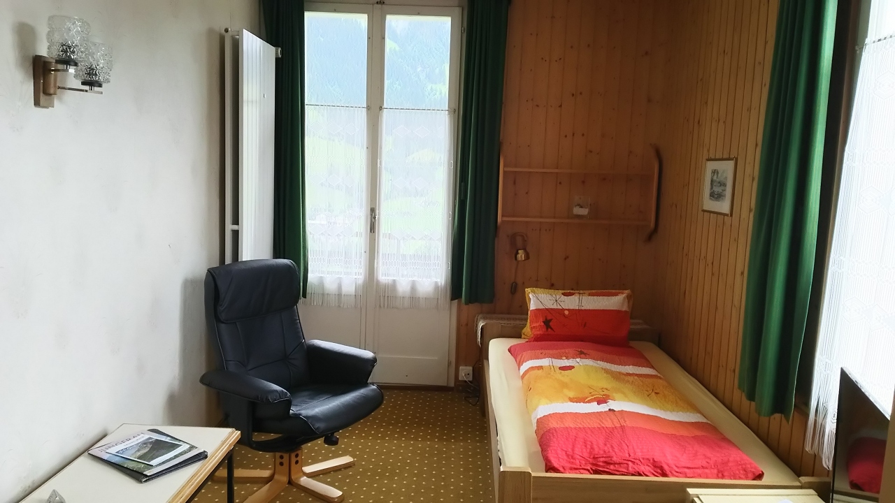 ホテルにはマウントビューの部屋と、そうでない部屋があります。当然、前者の方が高いのですが、ここは世界の山岳リゾート「グリンデルヴァルト」です。