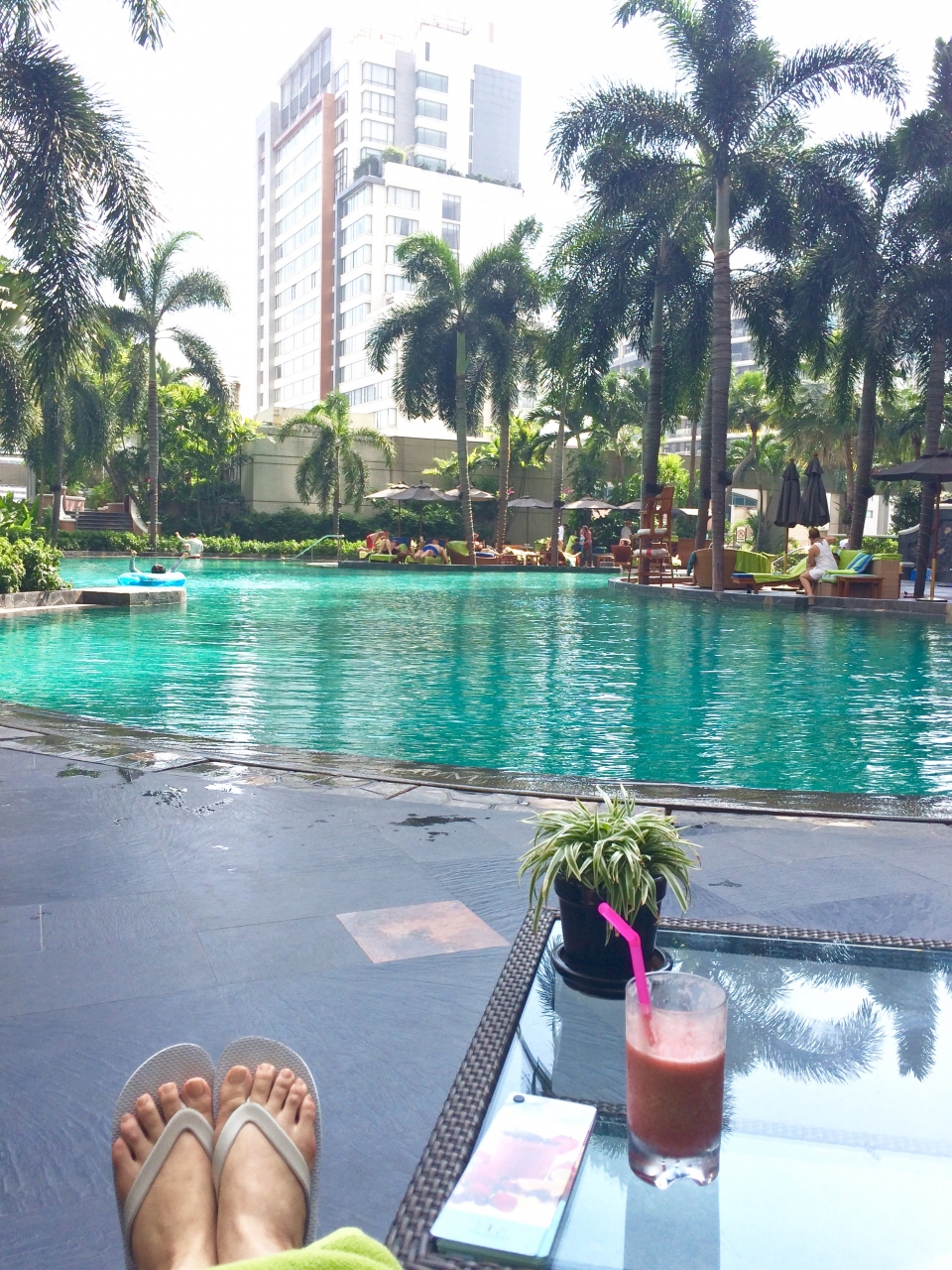 場所は、プルンチット駅からボコボコ道を徒歩15分くらいです。基本ホテルでゆっくりして、少し出かけるくらいの人はオススメです。ホテルから駅までシャトルバスが出ていますが、いろいろ出かけたい人にはちょっと不便な場所です。併設のショッピングアーケードは半分くらいやってませんでした、スーパーは便利で利用しました。ホテルはとても高級感があります。やや古いですが、部屋も高級感があります。プールは思っていたより素敵でした!