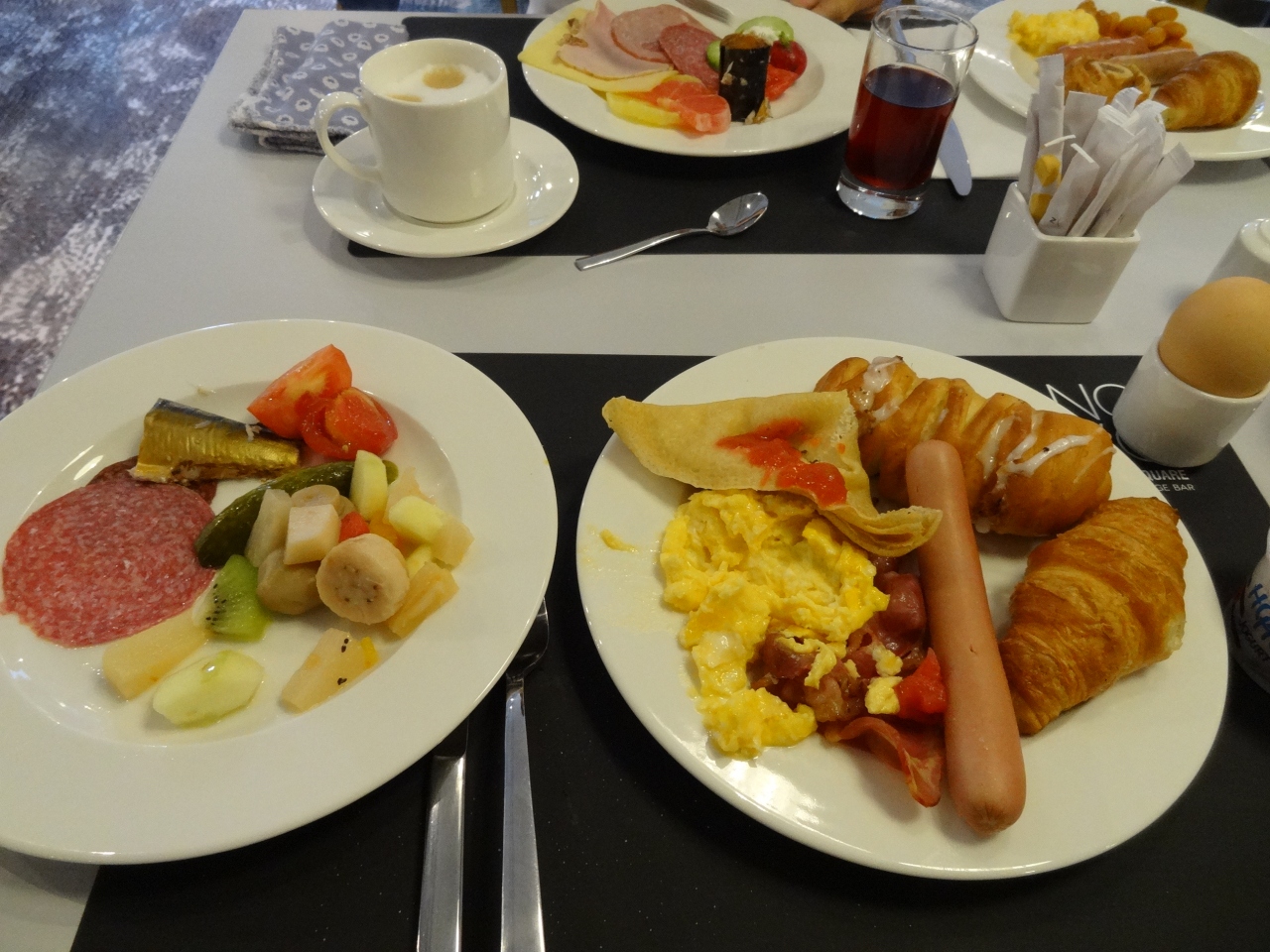 部屋全体が近代的な作りになっている。バスルームもバスタブが深く入りやすいが、シャワーカーテンがないので苦労した。ホテル入り口には小さな人形がある。この町のシンボルで200数十体の小さな人形が町中にあり、それを探すのもおもしろい。水はサービスで老いてあるが、炭酸いりでのみにくい。空調設備も完璧だった。Wi−Hiも無料。