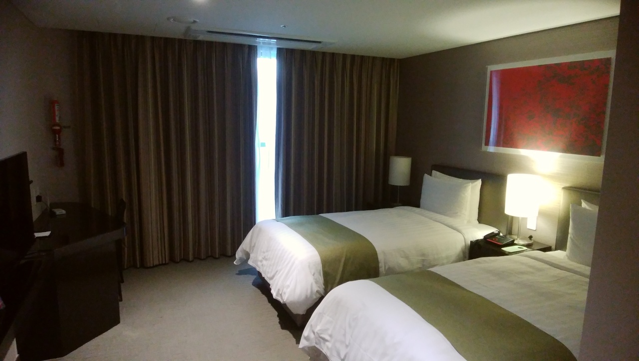 大型シティホテルではないので、ホテル滞在そのものを楽しむという形態ではないですが、プサンの街を楽しむためのホテルであれば、抜群の立地です。地下鉄の駅もチャガルチ駅やナンポドン駅から徒歩5~6でプサンの繁華街のど真ん中に位置しておりどこに行くにも不便がないです。ホテルは大型商業ビルの上階部分で、入り口がビルの脇で若干分かりにくいです。部屋はビジネスホテル以上の広さ、質感があって、スーツケースも余裕で広げられます。テレビも日本のチャンネルが3つ見られます。朝食はシティホテルほどの品数はないですが、質も含めてそこそこ充実しています。