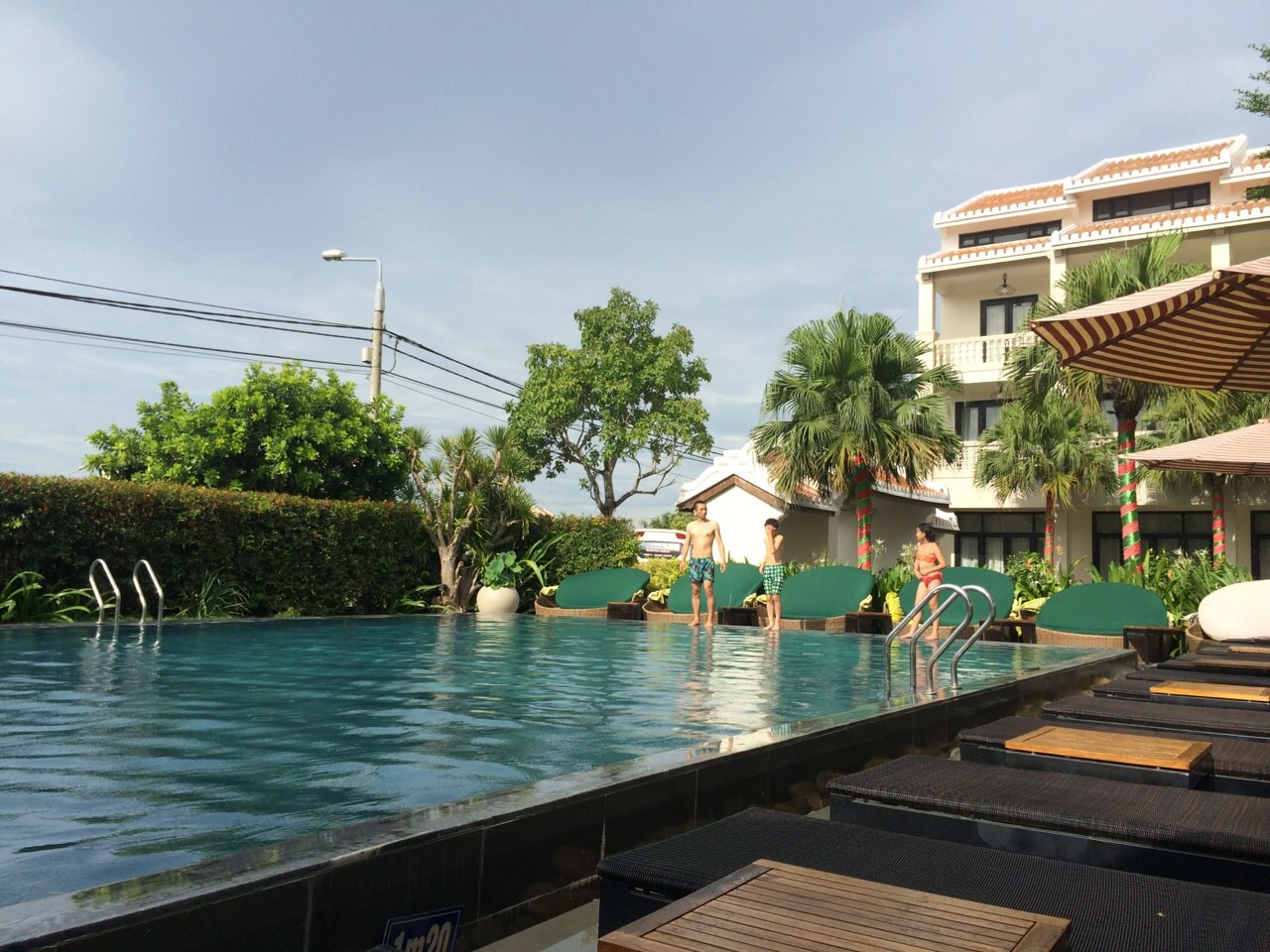 ホイアン中心部から徒歩で5分ほどです。新しいホテルらしく内装はシンプルですが綺麗で問題ありません。部屋は広くのんびり出来ます。ただ私が泊まった部屋はホテルからの眺めは最悪でした。裏側だったのでしょうか民家が丸見えで夜遅くまで音楽がガンガン流れてました。私達は観光メインで部屋でのステイを楽しむタイプではないので許容範囲ではありましたがステイメインの方なら無しかな。チェックイン時に交渉するのが良いと思います。その他は全て合格です。朝食の種類の多いダイニング。味も文句無し。プールも清潔です。夜はライトアップも美しく遅くまで入る事も可能です。次回訪れた時も宿泊したいと思いました。
