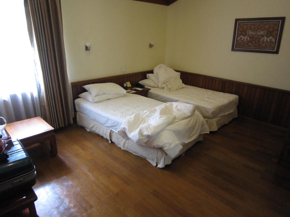 2016年9月11・12日にバンガロー宿泊。ロビー棟の西側には悠久の流れのエーヤワディー河が流れ、敷地内には本物のパゴダまである。日本資本のホテルだけに細かいところまでよく出来ており、スタッフの笑顔も気持ち良い。パナソノック製エアコンも静かで良く効き、東芝のTVでNHK放送も見れた。Wifiは少し弱いがなんとか繋がり、バスタブのお湯も十分入った。ツアーなので料金は不明だが、20万円を欠けるツアー料金から推定するとリーズナブルかと思われる。