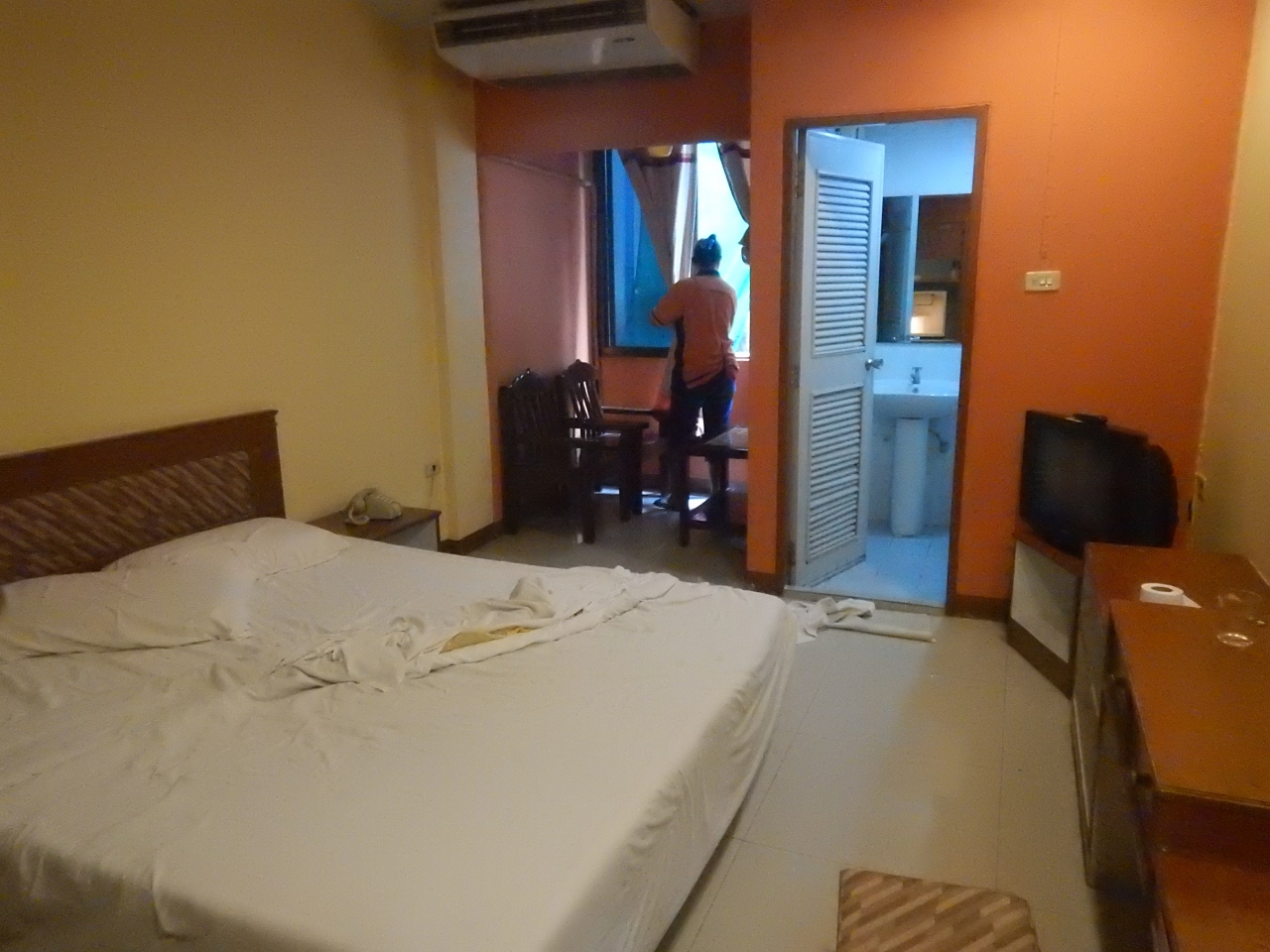 比較的安い値段で泊まれるし、ロケーションもいいので、割と気に入っている宿だ。今回の宿泊は2度目、チェンマイ到着時とチェンライから戻って来ての2泊した。部屋でWIFIが使えるし、机があるので作業がしやすい。冷蔵庫も小さいながらある。ミネラルウオーターが2本無料だ。