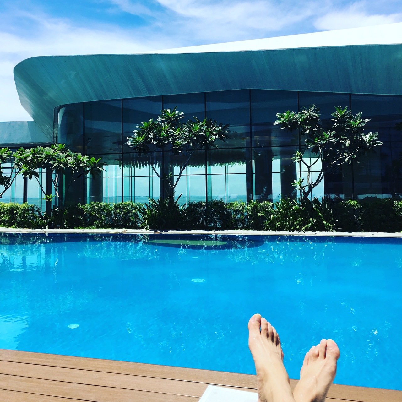 ただ、ベイビューは一面海ではなく、ホテルや隣のモール越しなので想像ほどではありませんでした。プールはホテルの真ん中に位置し、直接海は見えませんが、雰囲気がとてもよかったです。特筆すべきはラウンジと朝食です。ラウンジは朝食はもちろん、フリードリンクやスイーツ、夕方からはアルコールも置いてあり、外の景色眺めながらゆったり至福の時間を過ごせます。