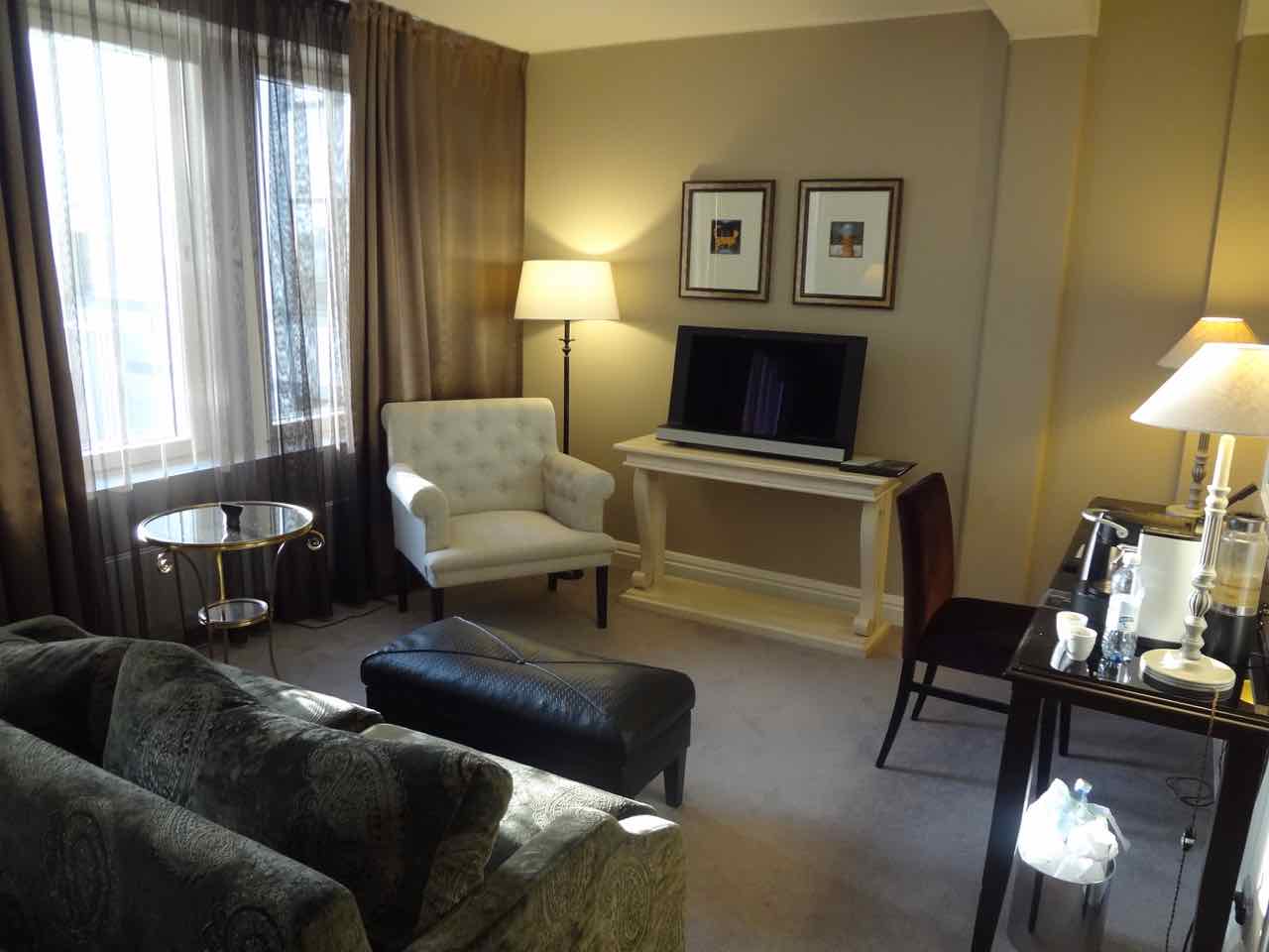 部屋は港やウスペンスキー寺院が見える側で広くて使いやすい。窓にはパネルヒーターが付いている。空調はおそらくセントラル方式、まだ暖房期ではないようで温風は出ないので部屋は少し寒く感じたが、ベッドに入ると寝具が上質のせいかすぐに暖まりぐっすり眠る事ができた。