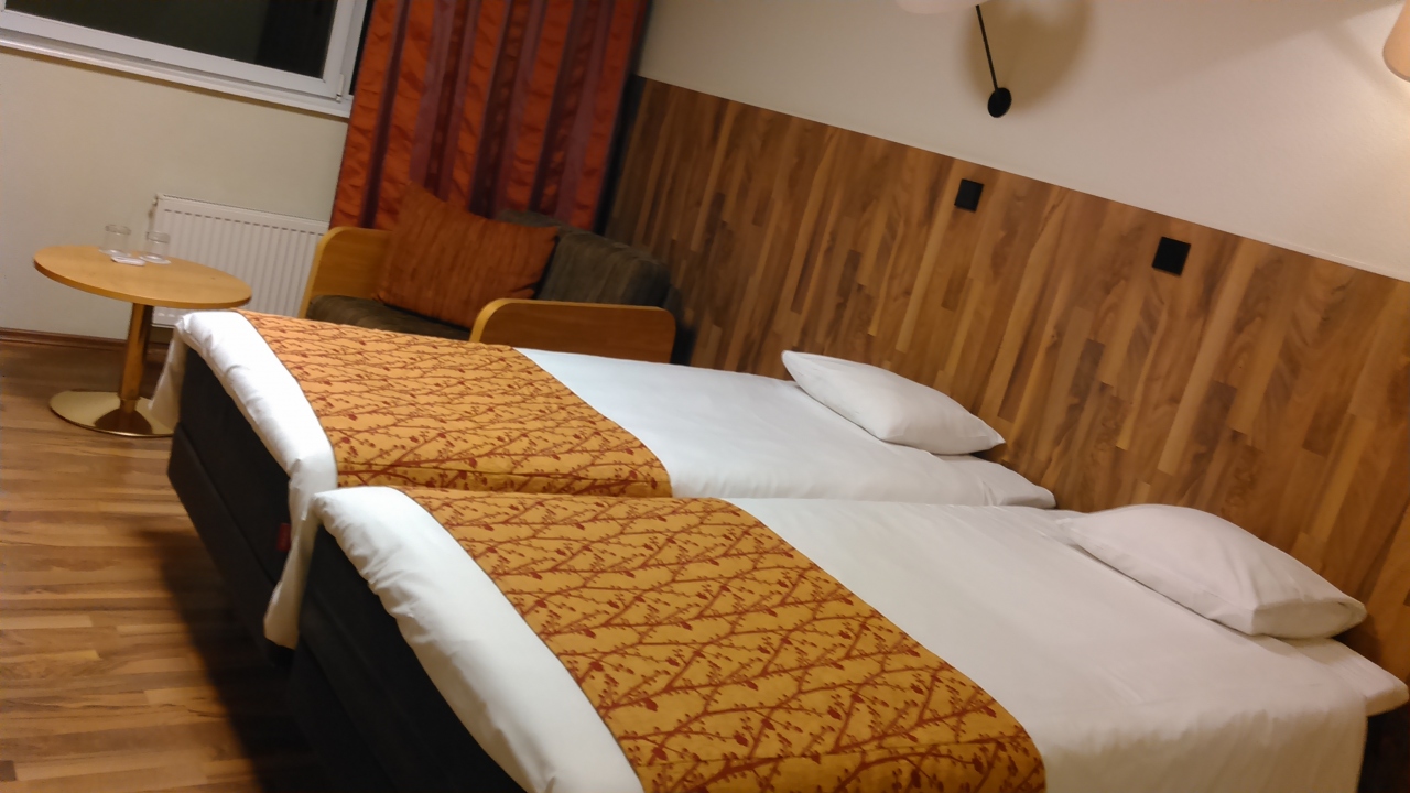 ツアー初日にフィンランドからフェリーでタリンに渡り、1泊しました。港から車で5分程度と近いです。歩いても多分15分程度かと思われます。バスタブはなく、シャワーのみ、電気ポットや無料のお茶セットなどもありません。シャワー排水は時間をかければ大丈夫ですが、今一つでした。部屋の内鍵があるのに、閉められず、大変不安な一夜を過ごしました。
