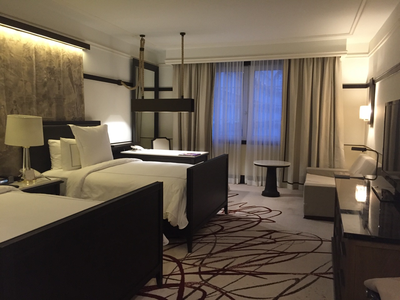 2泊しました。1年前に改装を終えた客室はシンプルながらクラシックさがあり、スーペリアルームでも充分な広さで特に書斎テーブルが大きく、主人とノートパソコン2台で作業できる程でした。