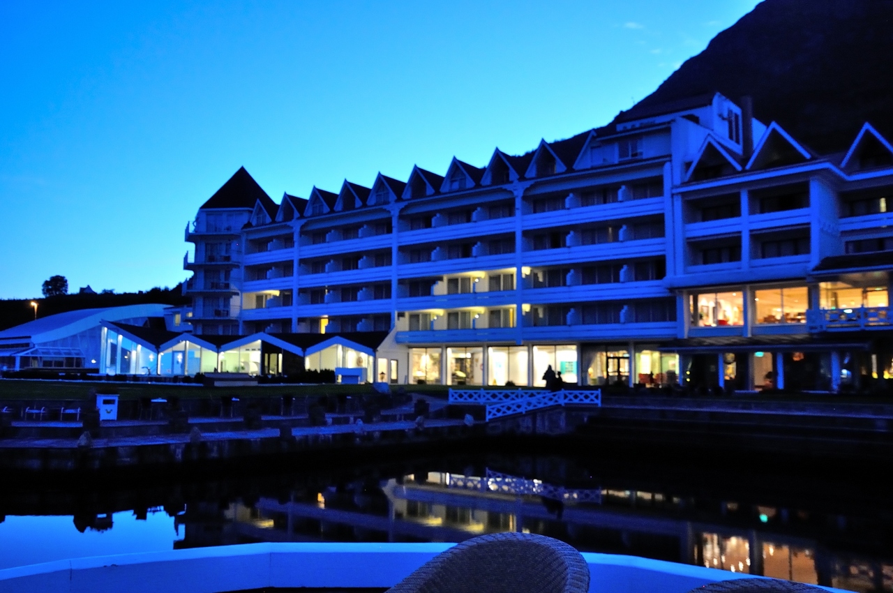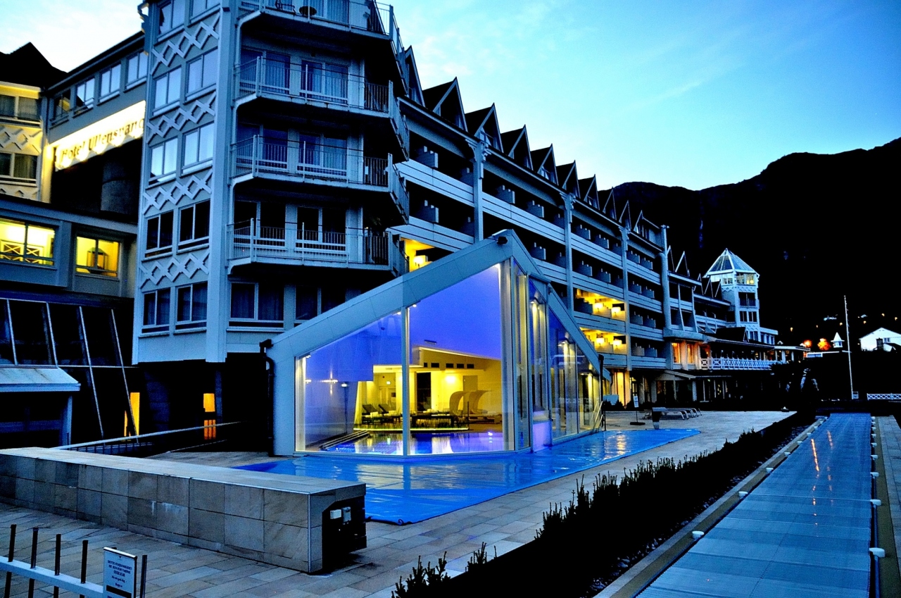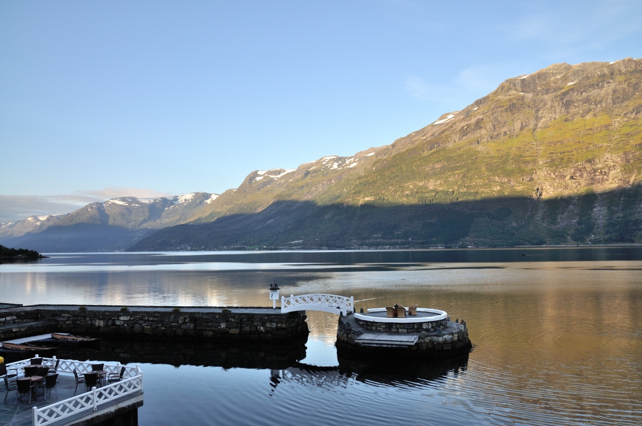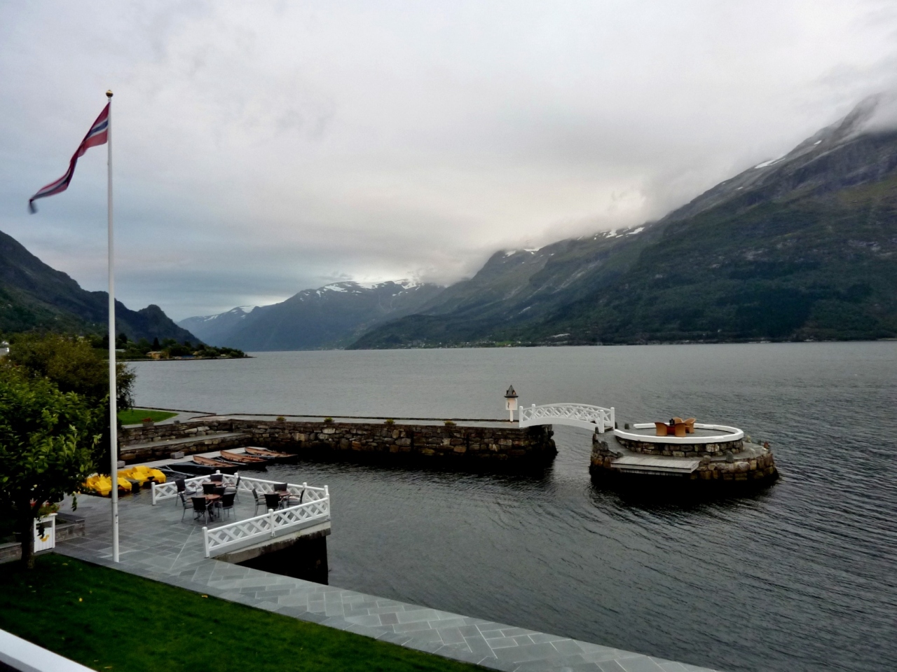 山とフィヨルドに挟まれた素晴らしいロケーションに建つモダンなノルウェー様式の建物で、客室はやや暗いが内装は良い。