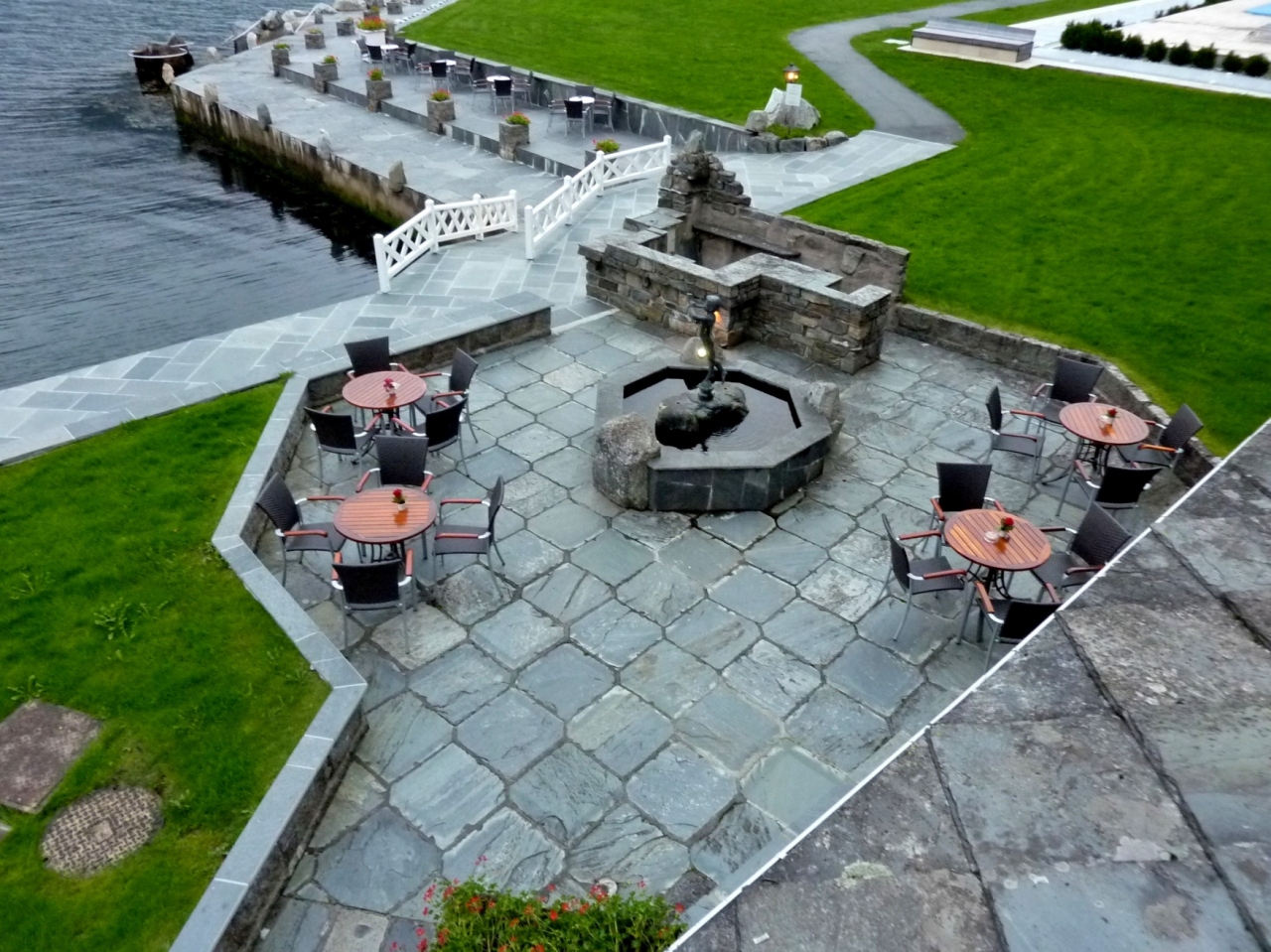 大きなバルコニーからのフィヨルド眺めが素晴らしく、いつまでも美しい景色にみとれてしまいます。
