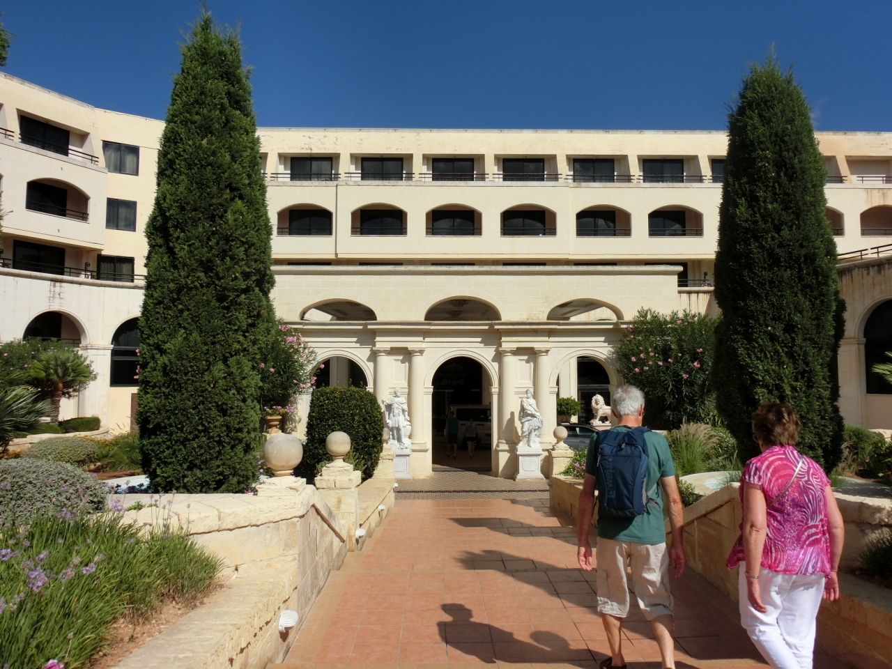 ヴァレッタの城壁の外、海沿いにある大きなリゾートホテル。客室はとても広く、バスルームも大きくて快適でした。広いバルコニーもありますが、隣の部屋との境目がざっくりした鉄柵で、丸見えなのが残念でした。