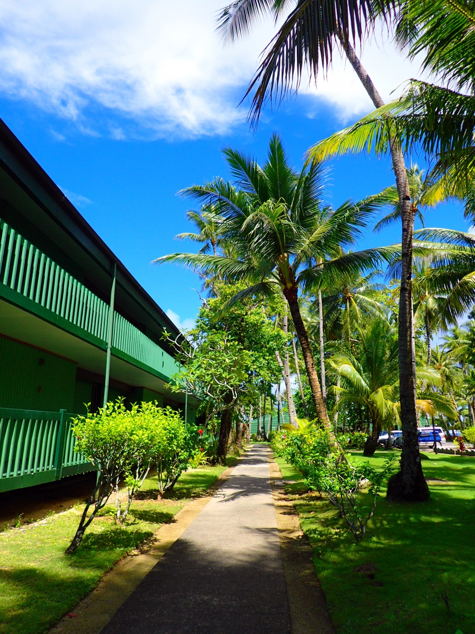 チューク唯一のリゾートホテル。ここを拠点に、ダイビング、シュノーケルツアー、ジープ島観光、キミシマ環礁トリップなどをすることができます。