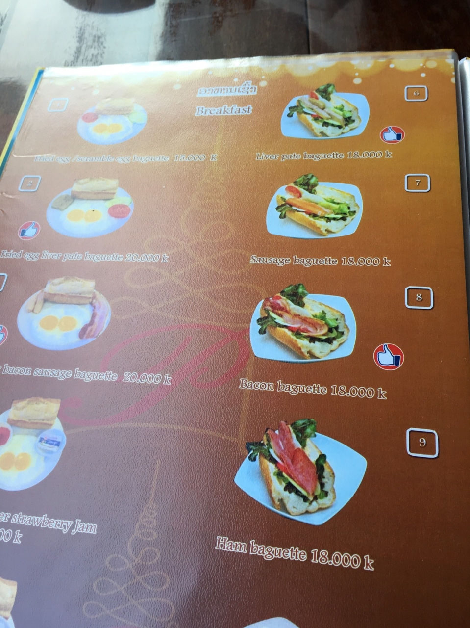 一階はレストランになっていますが、西洋的なものとラオスのローカルフードの両方のメニューがあり、どちらも楽しめて良いです。