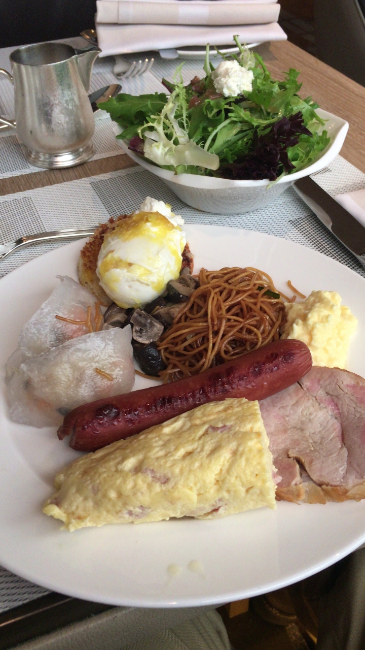 ダイヤモンドはラウンジアクセス付きなので上に上がってチェックイン後すぐ朝食。しかし、ラウンジがとても狭く3人くらいがミールを取りに行くと混雑してしまいます。窓側にカバーや椅子の背もたれやあってせっかくの高層景色が見えないのもどうかと思いました。朝食、ハイティ、カクテルタイムのミールのバリエーションは少なく、無料とはいえ高級ホテルのラウンジミールとしては少し寂しい感じがしました。