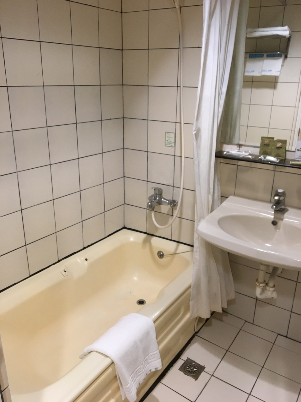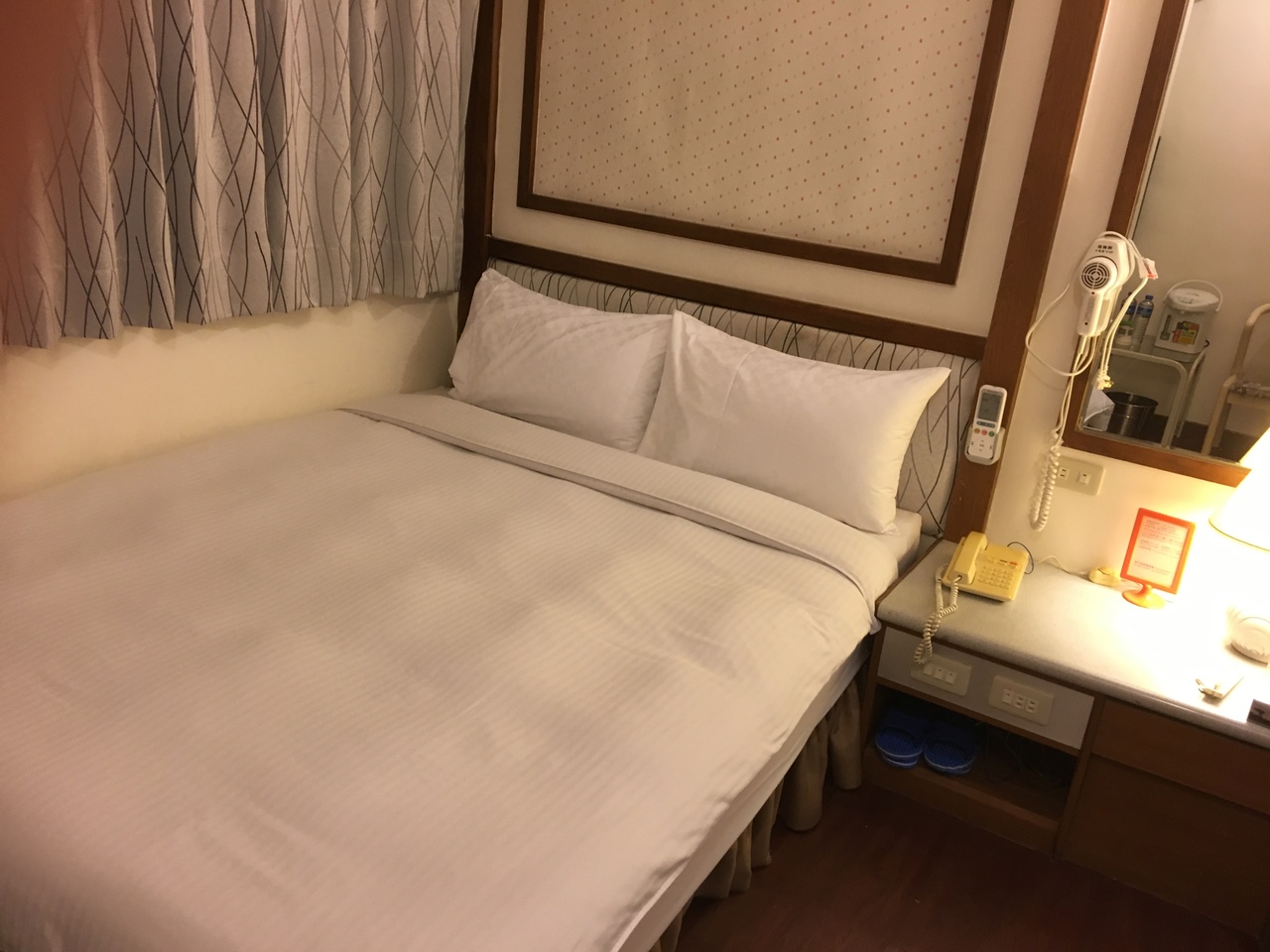 旧駅のバスターミナルから徒歩で7~8分ぐらいのところにある古いビジネスホテルです。奥が広いのか、玄関やフロントの大きさに比べると部屋数も結構ある様子でした。低価格帯なホテルであるにもかかわらず、バス付きはプラスですが、お湯はぬるかったです。
