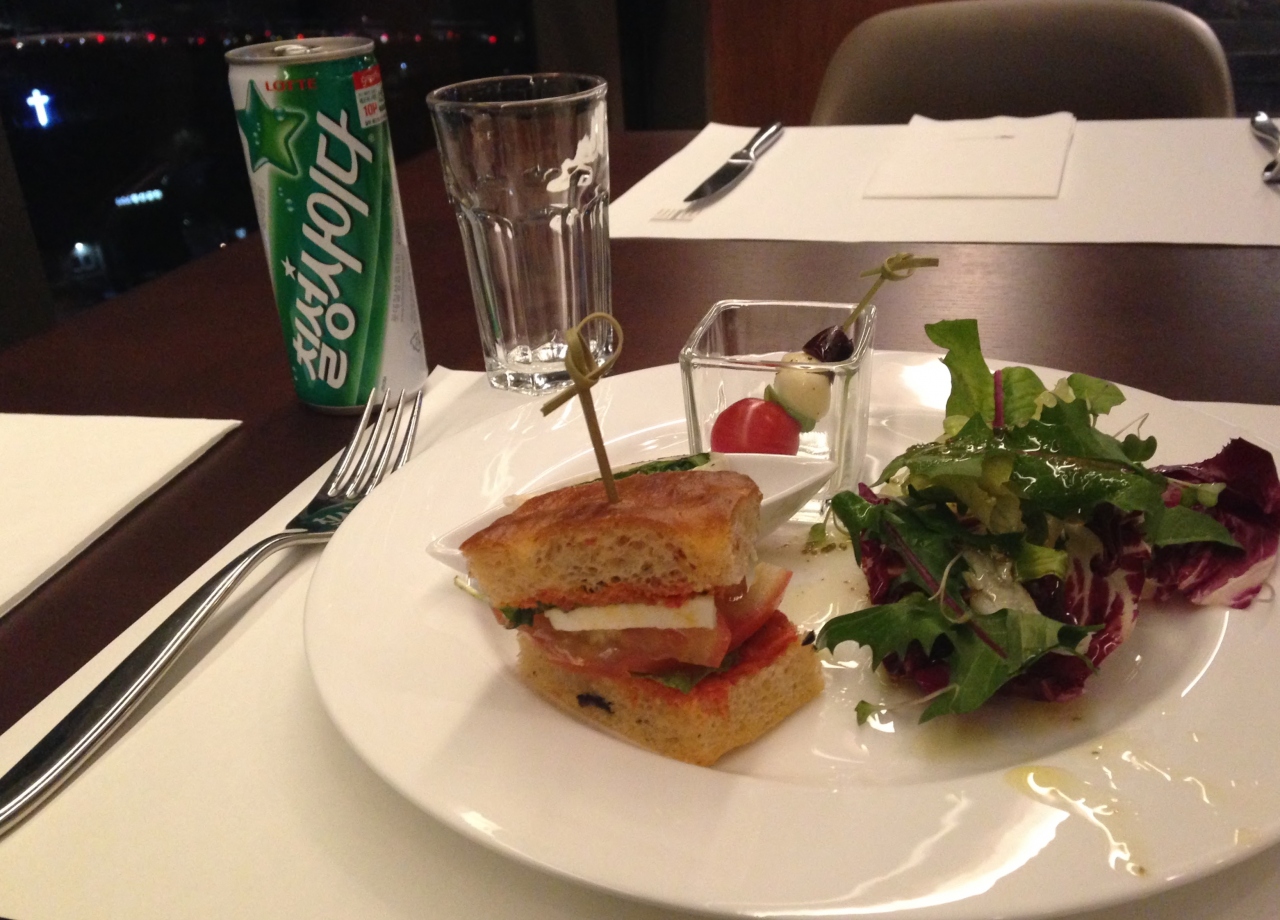 ソウル駅と明洞駅の間にある駅の3番出口を出ると正面に見える新しいホテル。エグゼクティブフロアの宿泊客は18Fの専用ラウンジでチェックイン・アウトできる。南山タワーが正面に見えるシックなラウンジでは朝食はもちろん、夕方のフードも充実しており、ゆったりとした時を楽しめた。