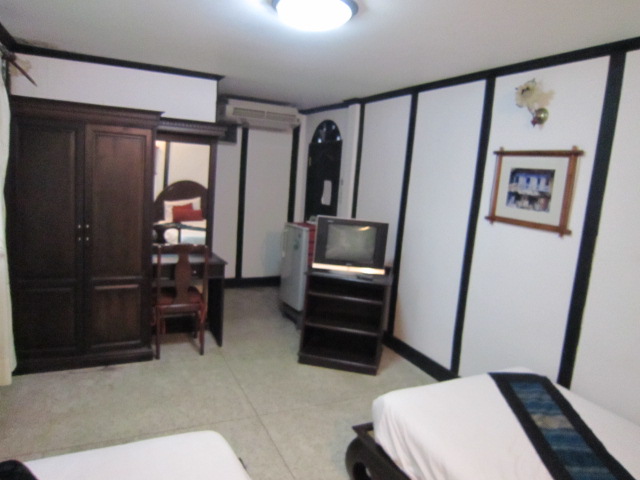 テレビは映らず、バスルームは瞬間湯沸かし器のシャワーとトイレ、シングルベッドが2つ並んでいて、古いたんすがあり、ゆったりしたスペースではありました。