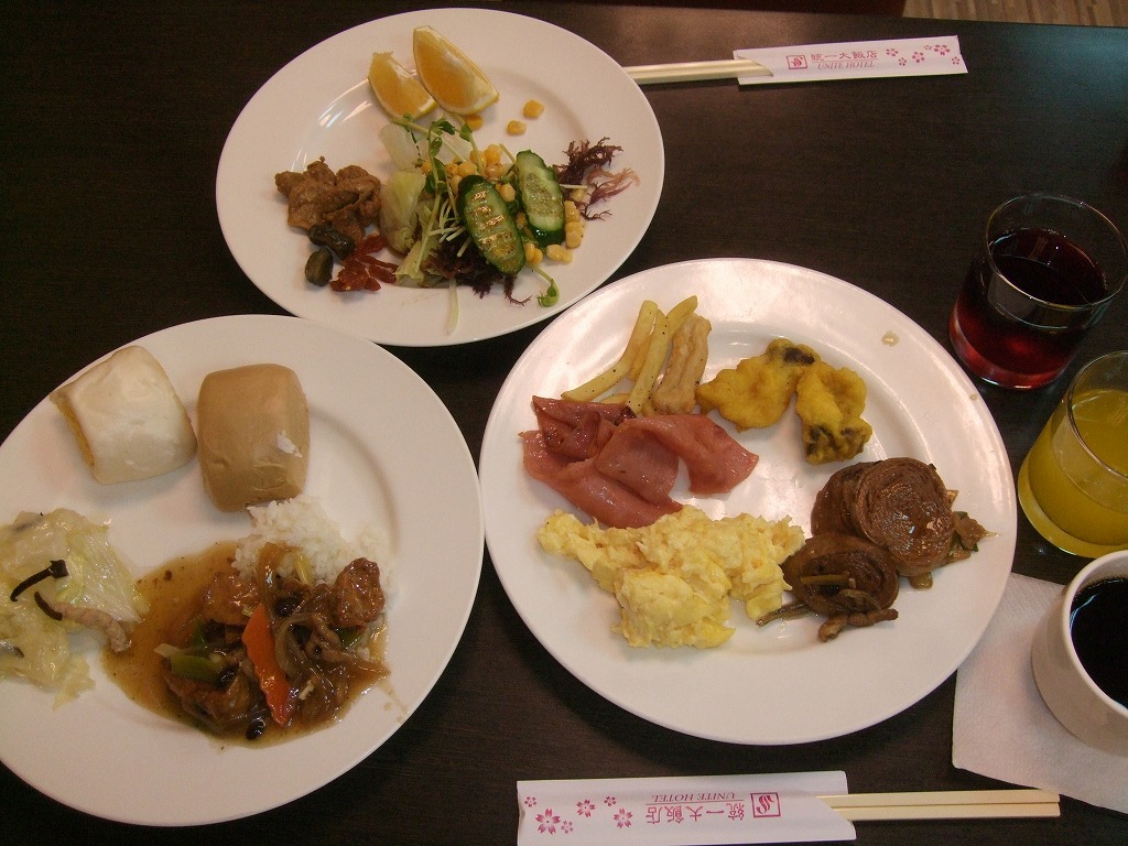 朝食バイキングも、パンやお粥、サラダなどいろいろあって、結構満足出来る数と量でした。