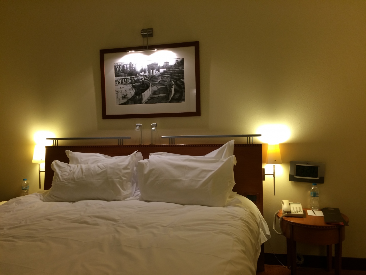 アテネ空港を出てすぐのホテルで、早朝出発などにはとても便利なホテルです。客室には無料の水が2本用意されていました。浴室は、湯船とシャワー室が分かれていて、日本風なゆったりできるものです。シャンプーなどのアメニティも揃っており、コーヒーやスリッパまで揃っています。