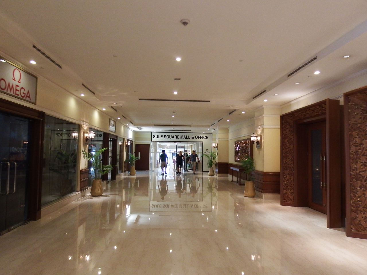 2016年12月27、28日利用。入口で荷物のX線検査と人も検査機を通過する。左側のレセプションでチェックイン手続き。デポジットとしてクレジットカードの提示を求められる。また、ビジネスマンが多いのか名刺を求められた。後日、名刺表示のメールアドレスに宿泊御礼と会員入会案内が来た。首都で外資系、外国人向け特にビジネス客も多いホテルなので、レセプションの女性係員も英語で迅速処理である。部屋は17階。18階以上が最も高いランクのホライゾンクラスなので早めの予約が功を奏したか。部屋は以前宿泊したトレーダース時代と大きく変わる事はないが、内装に豪華さを高めた様だ。部屋の無料ペットボトルは3本。ツインベッド、バス・トイレ・洗面台は一部屋形式。部屋の広さは普通。室温は全館気温管理なのか部屋のクーラーを止めても涼しい風は止まなかった。エレべーターは昇る際は部屋カードキーをかざして階を押す。部屋入室はカードキーをかざすだけ。朝食は1階のカフェスーレ。大勢の利用者で混雑し騒がしほどの雰囲気。客層は年末時期であり観光客が多い。欧米系を中心にアジア系がいる。宿泊者数の割には狭いが、種類は多い。サービス員の応対もきびきびしている。1階ロビーは広くはないが正面待合所は豪華な造りであるが椅子の数は少ない。トレーダース時代に比べてホテル全体の内装に豪華な感じを出している。ロビー左側のレセプションを通過し進むと、新しく「スーレ・スクエア・モール」が出来ていた。ホテルと通路で繋がっている。ドアをくぐるとスーパーのシティマート、シャン料理のシャンヨーヤー(エレベーターを上がり2階)、カフェ、本屋、両替所、寿司バー、ブランドショップ、美容院などがある。外へ出かけずとも食事や買物が出来る。宿泊客にとって利用価値は高い。モールからホテルへ戻る際にも手荷物をX線検査に通す。