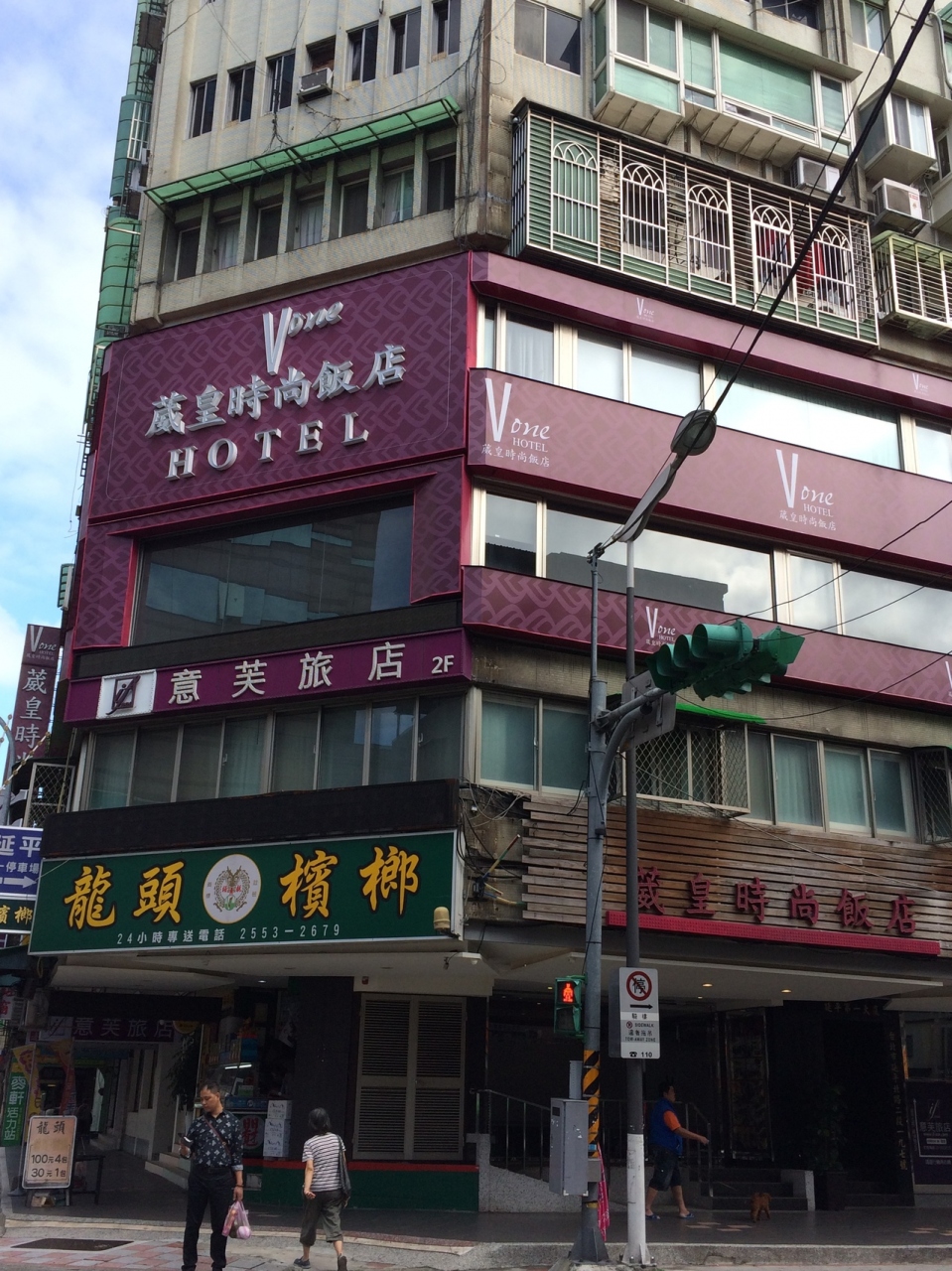 延平北路にあります。カリフールまで徒歩で行けるホテルです。近辺にはコンビニ、ドラッグストア、肉そんやさん(老舗)があります。紫の看板でちょっと外見はラブホみたいですが、中身はジムらしきもあって、フローリングも家具もモダンぽい感じでした