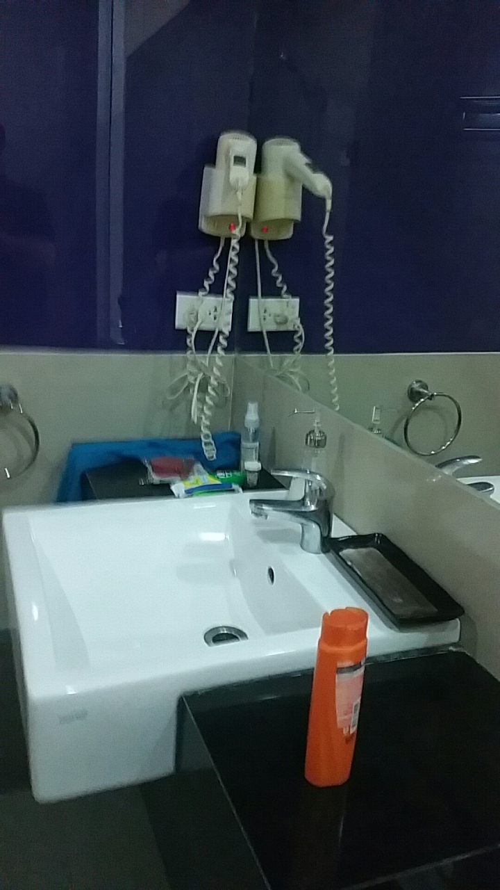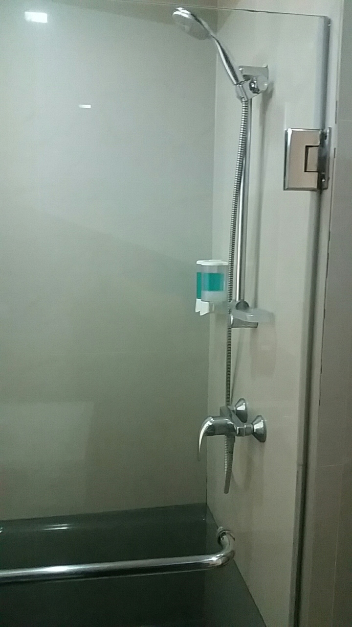 洗面には、珍しくドライヤーが常設されていました。バスタブはありませんが、シャワーブースは透明のドアがあるので、トイレまでビチョビチョになる心配はありません。
