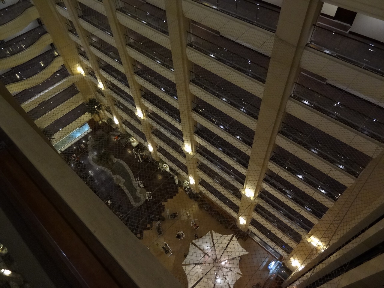 新西門圏繁華街にある「タイ ランディス ホテル 台南」で1泊しました。周辺には「新光三越」などある賑やかな便利な場所にあります。このホテルは22階建ての高級ホテルで、開放感のある豪華なロビーが出迎えてくれます。中央が吹き抜けになっていてその両側が客室になっていました。宿泊したのは、眺めの良い18階のツインルームでした。落ち着いた雰囲気の40平米以上と広いゆったりとして部屋で、シャワーブースやウォシュレットもあり、快適に過ごせました。