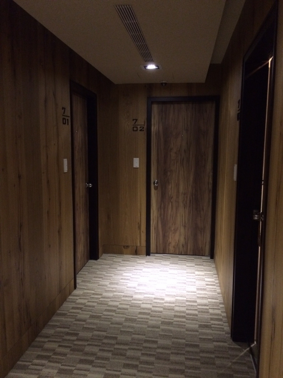 部屋は7階で廊下も綺麗。階下の廊下は壁色が違ったので、階によってリニューアル度が違うかもしれません。