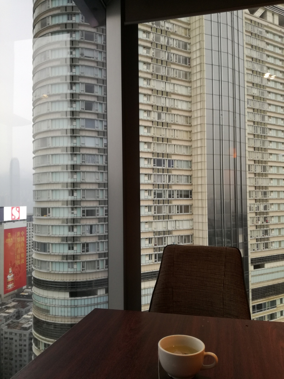 39階にあるクラブルームのラウンジは、飲み物と小さいケーキがある程度。