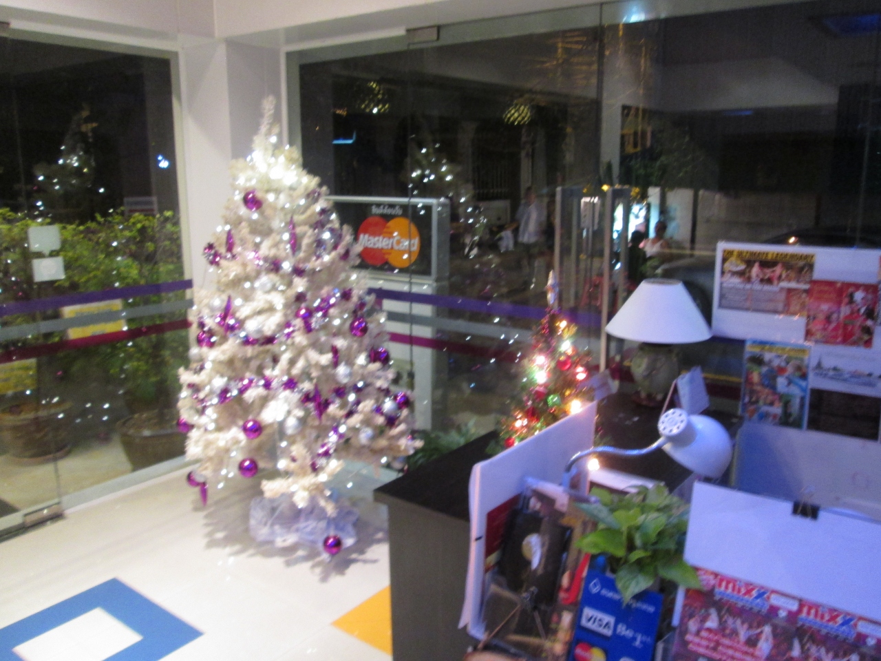 このホテルの特筆すべき点は、テレビがNHKプレミアだけでなく、民放の日本テレビ、TBS、フジテレビ、テレビ朝日が見れること。チェックインしてかばんを開けているときには、日本のサスペンスドラマを見て、夜は、ホテルに戻ってきてクリスマス番組が見れた。滞在中、タイの番組もいろいろ見れて良かった。