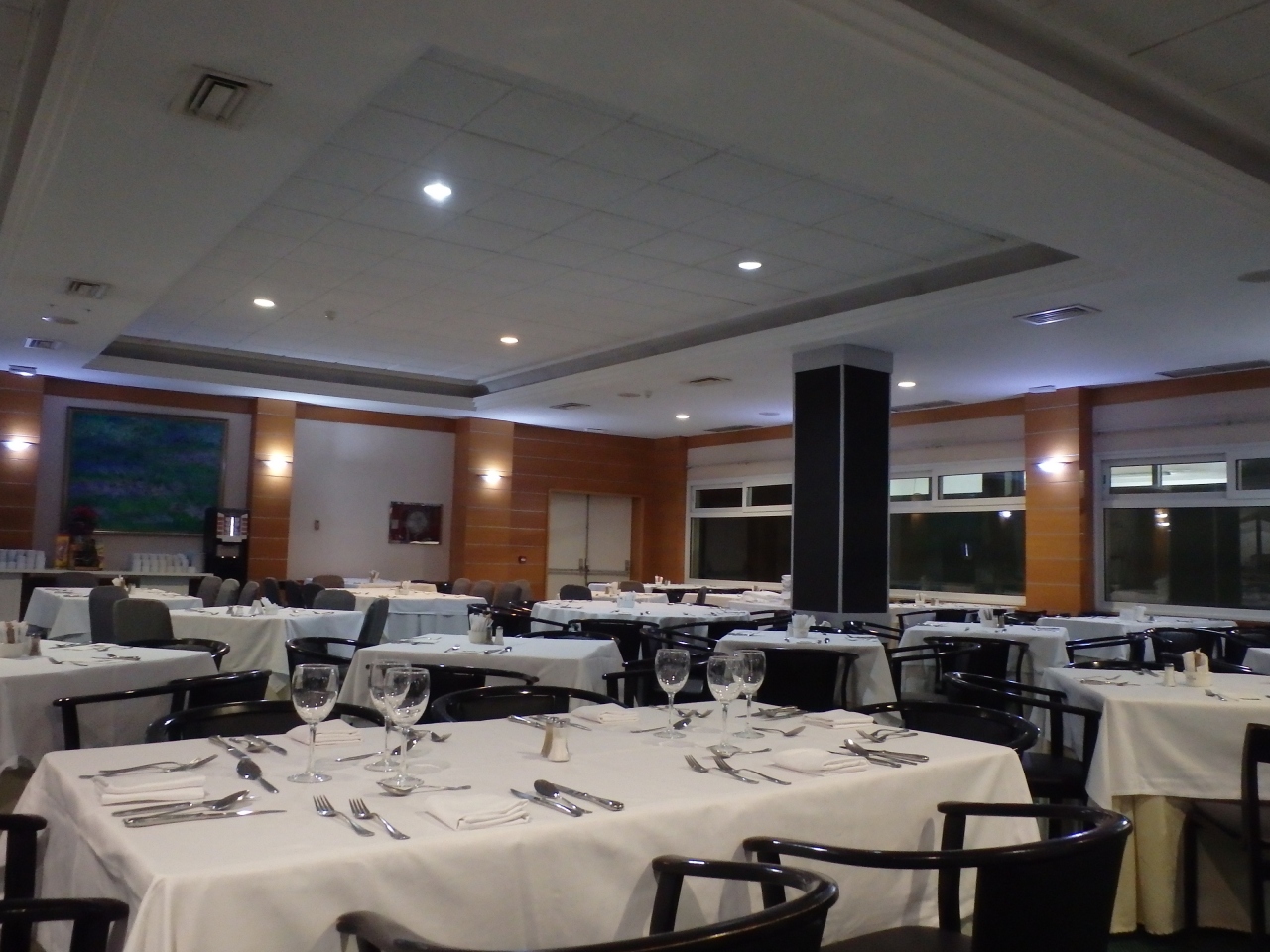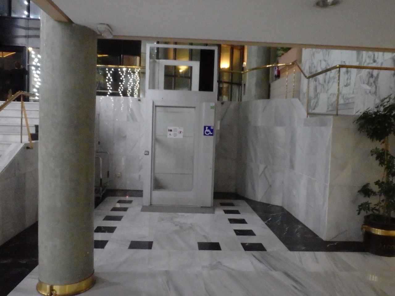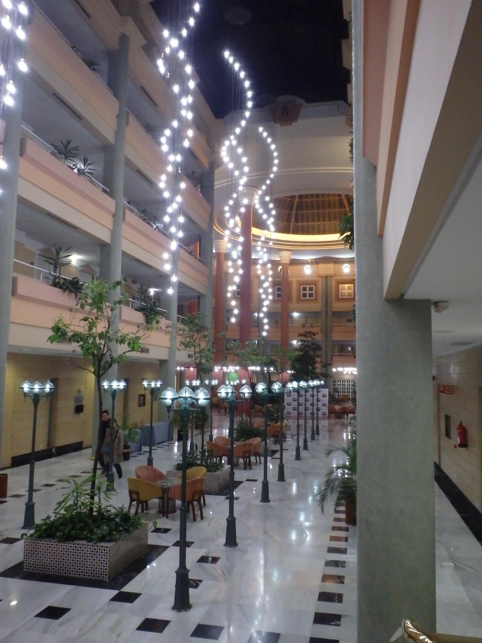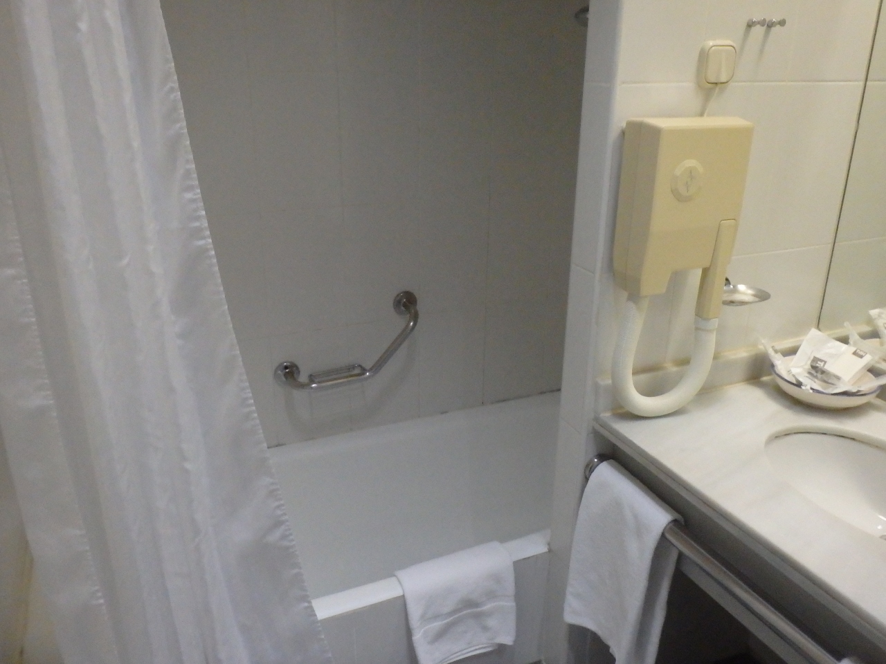 ホテルに入ると12段の下り階段が有りフロントロビーが有ります。スーツーケースがあるとこの階段は大変ですが、階段横には知さなリフトがあり利用することが出来ます。ロビーは凄く広い吹き抜けで大迫力。あまり飾り等はないが東京ディズニーリゾートのホテルを思い出しました。ホテル玄関を出ると正面やや左に大型のスーパーマーケットのカルフールが有り十分買い物を楽します。ただホテルからカルフールまでは近いのですが、行くまでの道路に歩道がなく、また交通量が多いのでちょっと気を付けないと危険です。