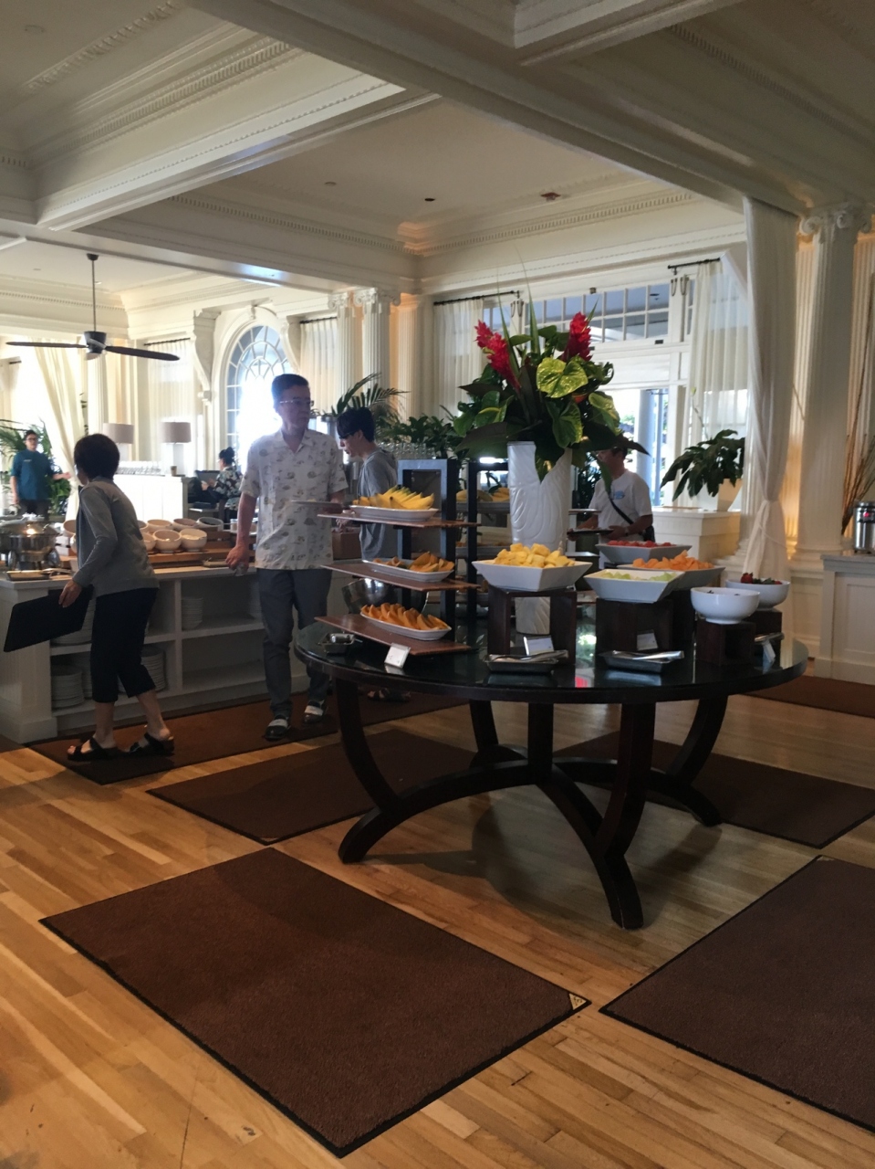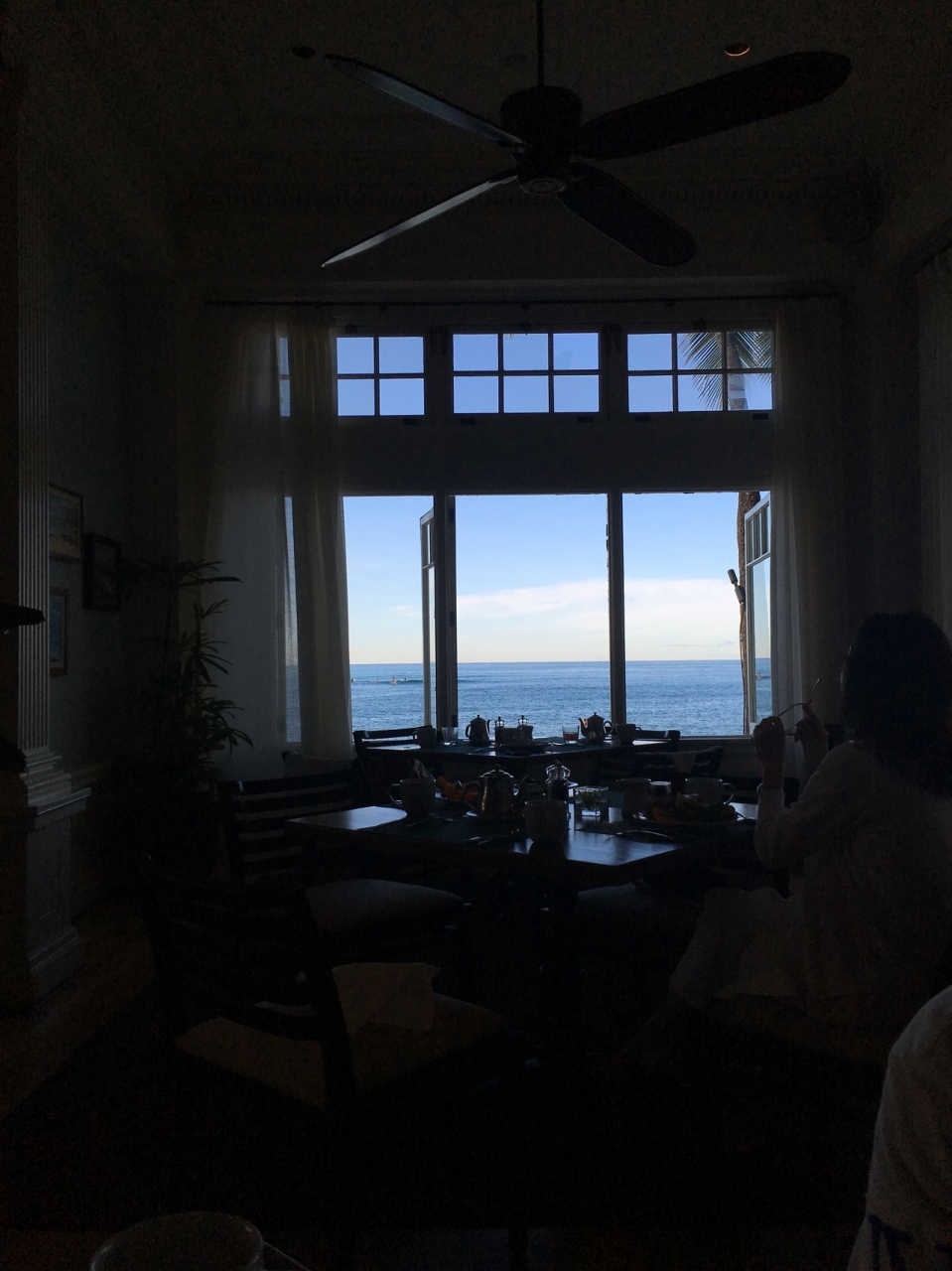 ロビーもレストランも優雅な雰囲気。レストランの席からビーチが見えます。テラス席も良いですが、窓から見るビーチも素敵でした。
