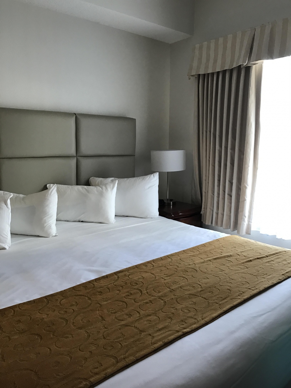 ユニバーサルスタジオから近く便利ですが、インターナショナルドライブからは離れているので、徒歩で行くことはおすすめしません。ホテルはコンドミニアムのようで快適でした。1Fにはスタバもありここで焼いてるピザも食べれます。TWNにしましたが、1KING+ソファーベッドが同じ料金だったので、そっちにすればよかったと後悔。なぜなら部屋に洗濯機と乾燥機、ダイニングテーブルもあったのでそちらにすればよかったです。ホテル自体にランドリールームがなく困ったいたら、その部屋を$15で貸してくれました。また、ユニバーサル行のシャトルバスは無料ですが、時間が不定期なのと時間がかかりすぎるので、結局タクシーを利用しました。