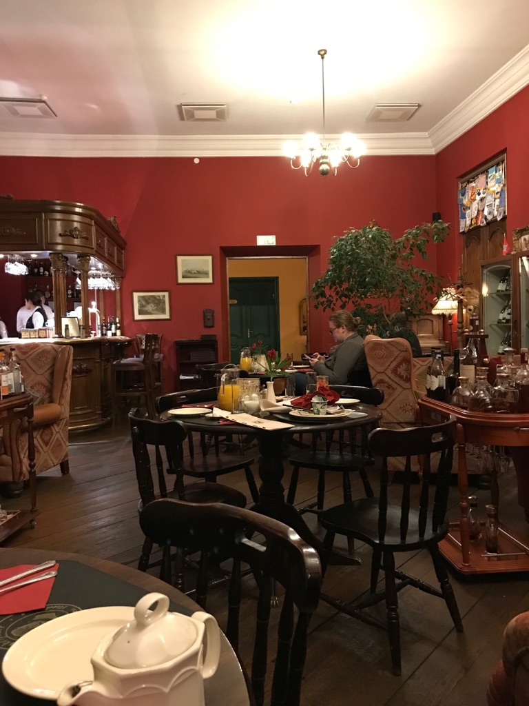 各部屋には文豪の名前がつけられていて、私が宿泊した部屋はドフトエフスキーでした。食堂には素敵な本棚があります。