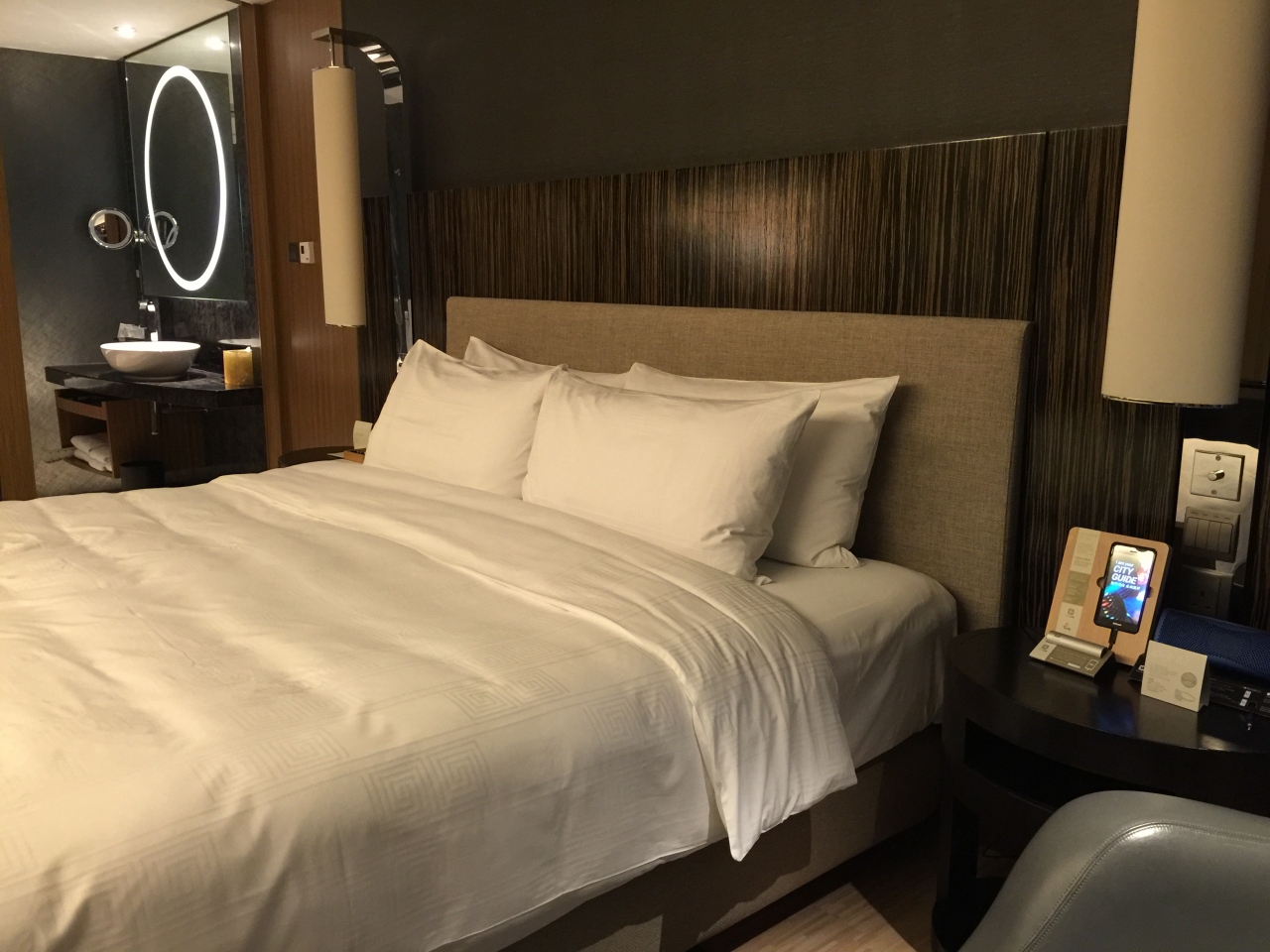 今回はクラブ36で宿泊したため、クラブラウンジ特典として、1階の混雑した受付ではなく上層階の専用カウンターでチェックインができ、そこで色々な観光の相談にも乗ってもらえます。部屋には備え付けのドリンクは全て無料。香港で使えるスマホが部屋に置いてあり、電話しても無料。イブニングカクテルも無料etc.コレでもかってくらいのサービスを受けられます。