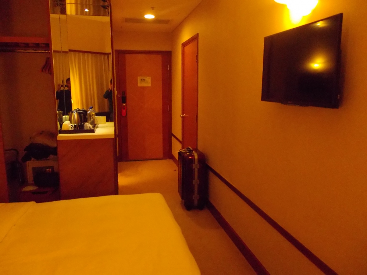 客室は広いとは言えませんが、スーツケースを広げることができます。