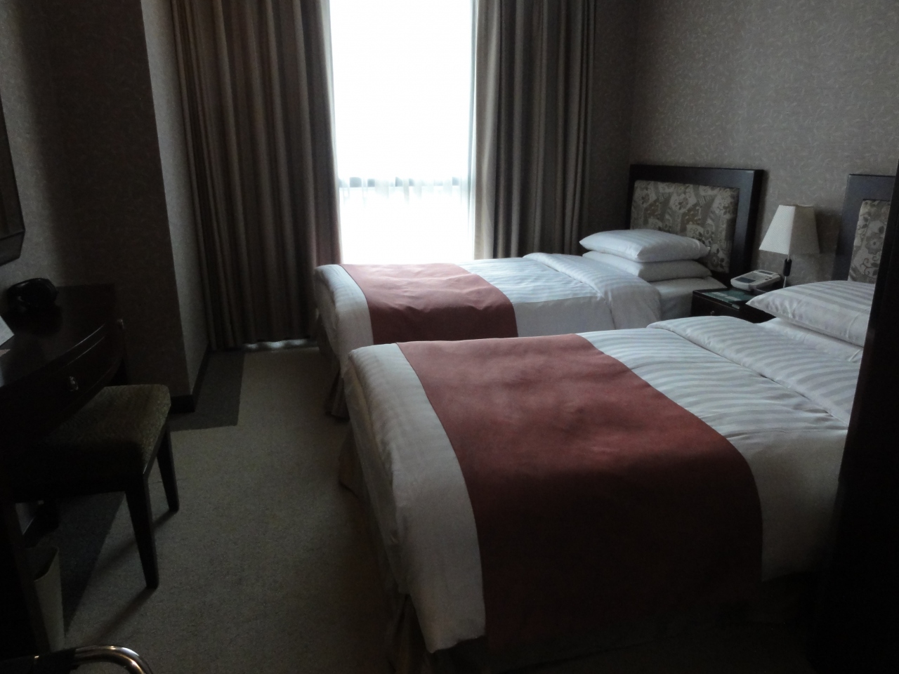 位置するこちらのホテルに泊まりました。室内は広く清潔でツインの部屋にはデスク、
