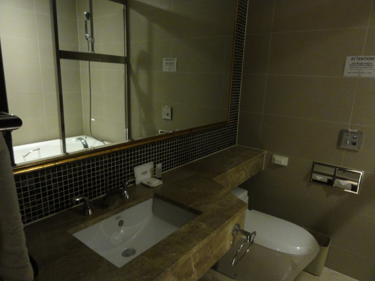 ローテーブル、ソファーが。ウォシュレット無、バスタブ付。バスローブ、セーフティボックス、ポット有。クチコミでよく書かれているように気をつけてもシャワーの水が洗面台の方に流れます。ベットの硬さは気になりませんでした。室内の明かりの調整が分かりずらかったです。館内にも近辺にも、コーヒーショップ、食堂等あり便利です。