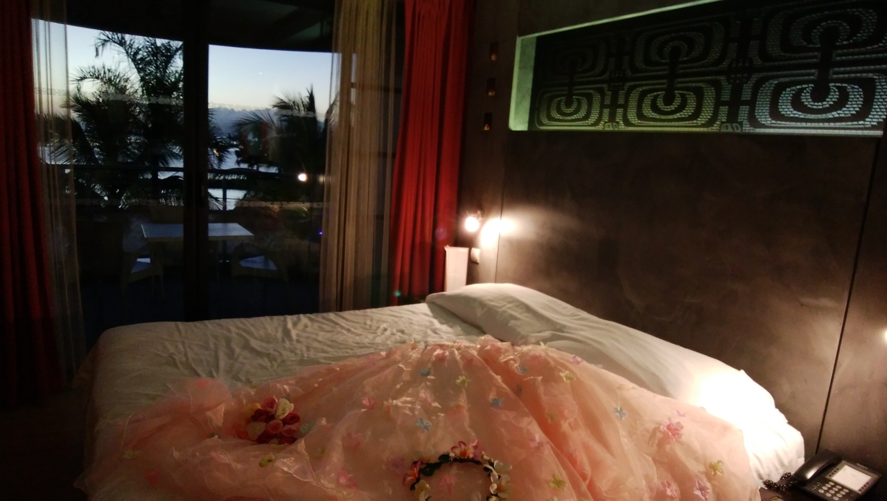 ラグーンビューを指定したので、部屋からはプールとモーレア島、夕陽が見えてきれかっです。部屋にはキッチンがあり、電子レンジ、IHや食器等が充実していました。部屋もタヒチっぽい写真等もありおしゃれなデザインでした。アイロンがあったり、1日1リットルの水が追加され、バスタブも大きくきれく、シャワーブースは別にありました。