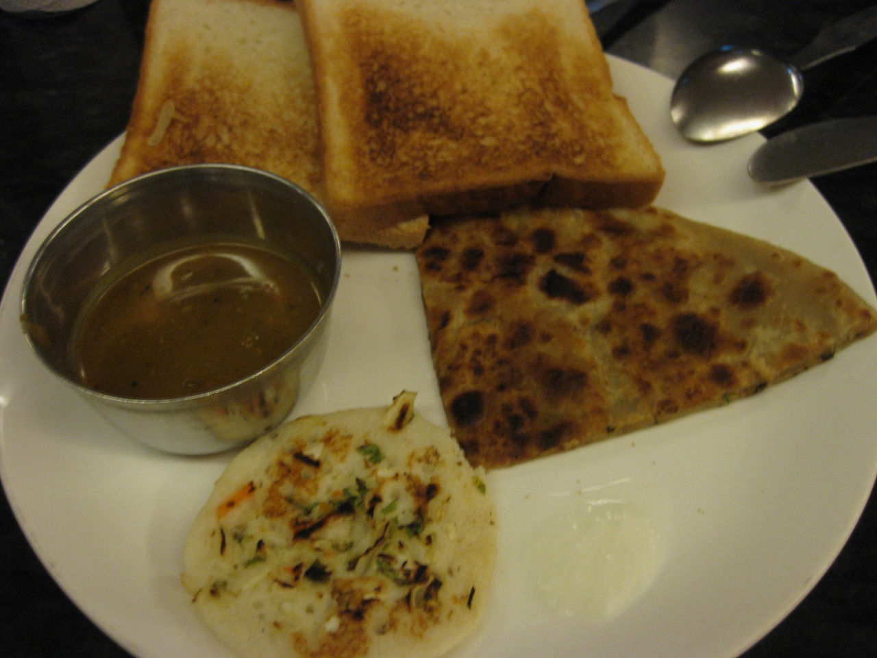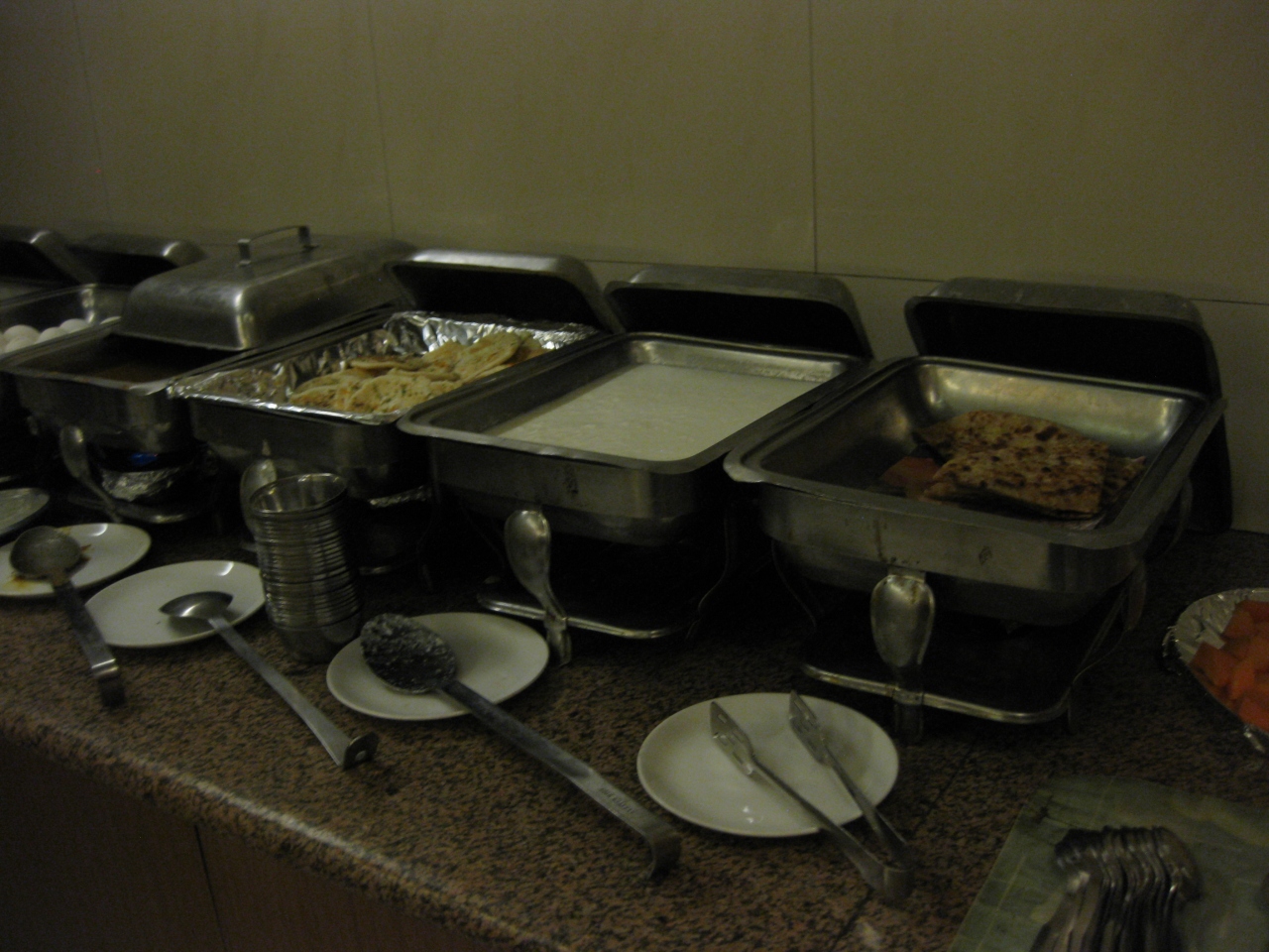 朝食はロティや辛いスープなどのインド料理と食パンのブッフェ形式なのですが、種類も4種類ほどで少なかったです。ジュースの機械があるのですが、表示と中身が違っていたりしました。
