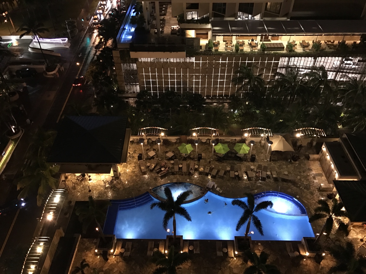 17:30-19:30のプールサイドでの軽食はナッツ類とナチョス、野菜スティック位なのでお腹をいっぱいにすることはできません。ビールやワインもありますが、皆さんチップをあげているので、アラモアナの白木屋の1ドルビールとお得感は同じです。本当はダメかと思いますが、プールのジャグジーに浸かりながらビールを飲んでいる人もいました。