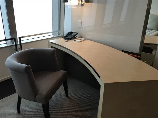 二人でルームサービスの食事を楽しめそうな大きなテーブルと、