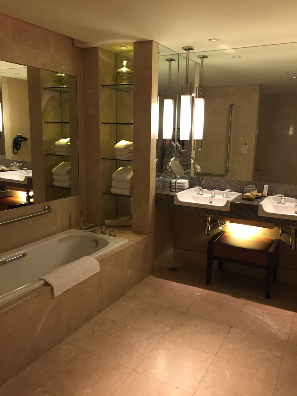 ミーハーさんにぴったりなホテルです。笑。ショッピングもカジノもレストランもカフェも何でも揃っていて1日中楽しめます。部屋も広々としていて大きな窓の外には小さくですが、マーライオンも見えます。バスタブ付きの部屋だとバスルームがとても広く優雅な気分が味わえます。屋上にあるプールも有名ですが個人的には55階にあるたくさんのビル群を眺めながらのジムでの夜のランニングがオススメです。