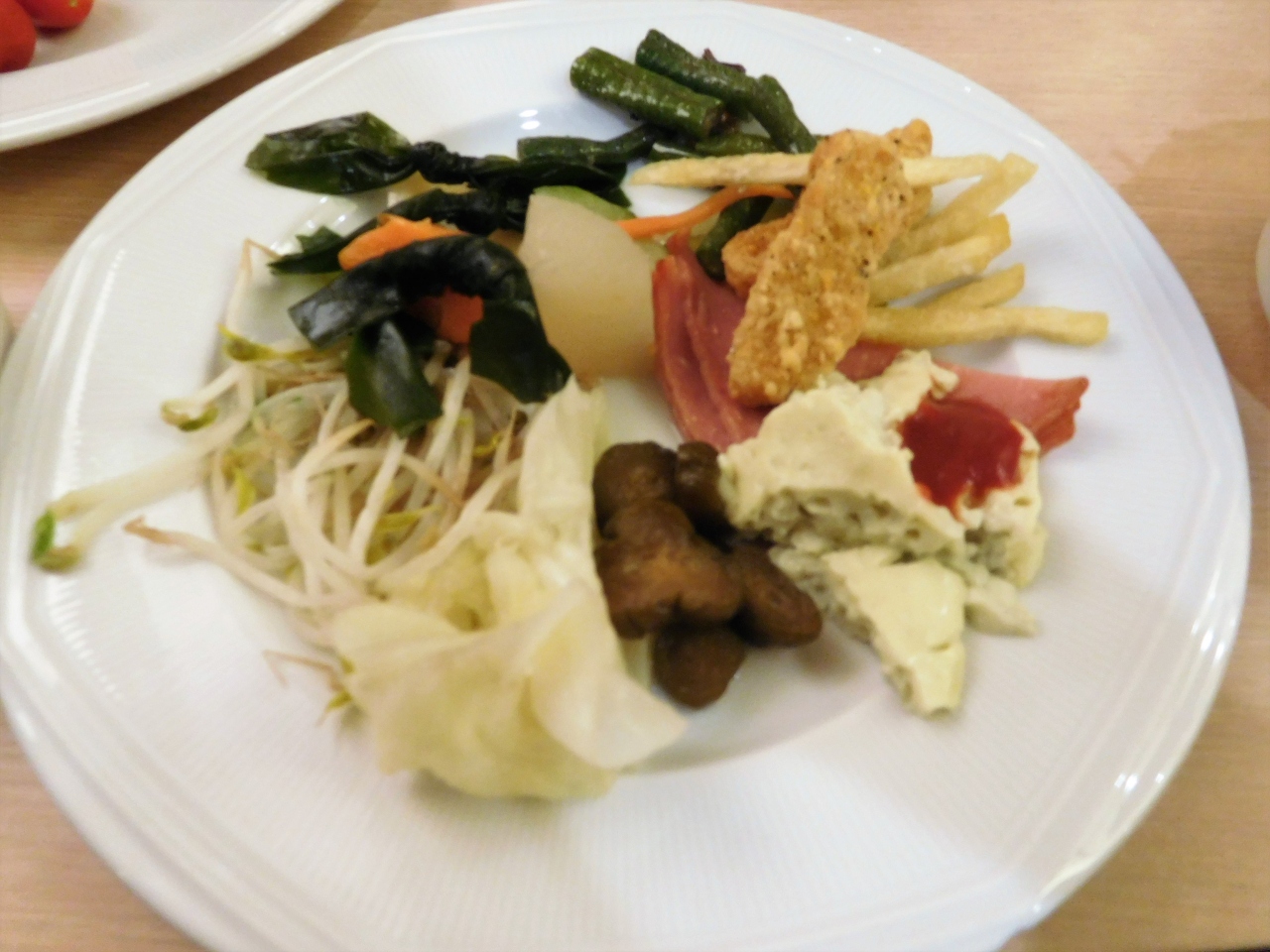 いろいろな料理、おかゆ、パン、サラダなどいろいろありました。
