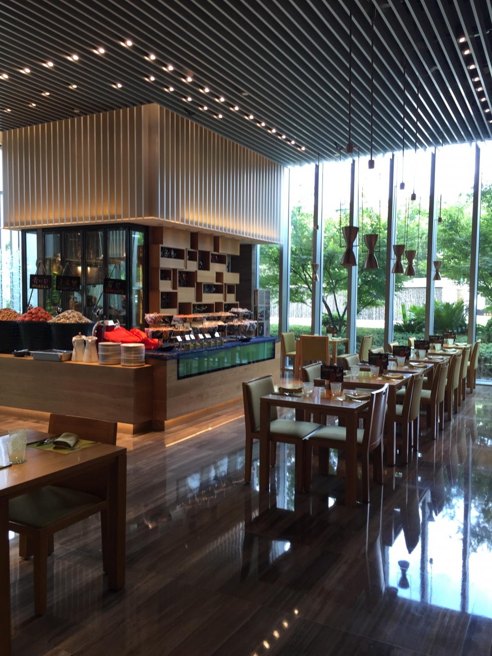 静安寺にそびえたつホテルです。夜になると虹色に輝き、一定時間で色がかわり美しいです。館内も素晴らしくきれいで開放的で明るいロビーは豪華ななかに上品さがあります。部屋は100平米近くあるスイートでしたが、眺望もよく最高の気分にさせてくれまいsた。