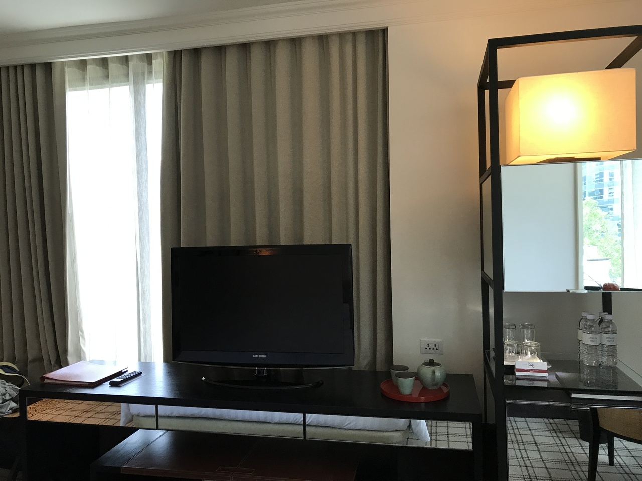 GRAND ROOMを予約し、6階の角部屋でした。角部屋なので、窓が多くよかったのですが、ホテルの部屋が全体的に暗い。あかりが足りない!?母があかりをすべてつけましたが、それでも暗い感じ。カップルなどではいい雰囲気くもしれませんが、家族旅行ではあまりでした。