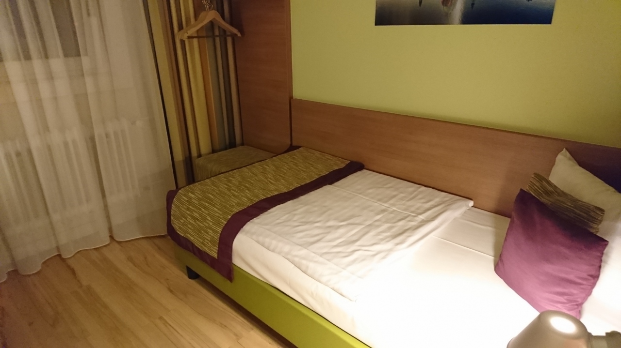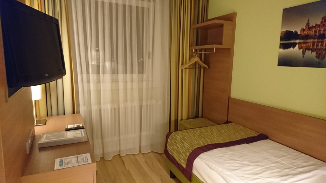 Hannover Messe関係の時期に宿泊しました。メッセ開催前は100ユーロ代で泊まれますが、メッセ開催時はいきなりその倍以上になります。Hannover Hbfからは、タクシーで10ユーロ強。トラムだと10分おきに出ていて、駅も近いので便利。ZOO行きに乗り、終点の一つ前の駅が降車駅となります。空港からだとタクシーで50ユーロくらいしました。公園の中にあるようなホテルで、静かですが、周辺にはお店が一軒もなく(ホテル施設を除く)、買い物は街中でしておかないと面倒です。部屋は、日本のビジネスホテル並みの広さで、スーツケースを開けるのがやっとでした。しかし、床が板張りで、ごみも落ちておらず清潔。2014年に改装されたとのことで、ビジネスで泊まるだけなら快適なホテルだと思います。朝食も18ユーロでしたが、チーズやハムの種類が豊富で満足感が高かったです。