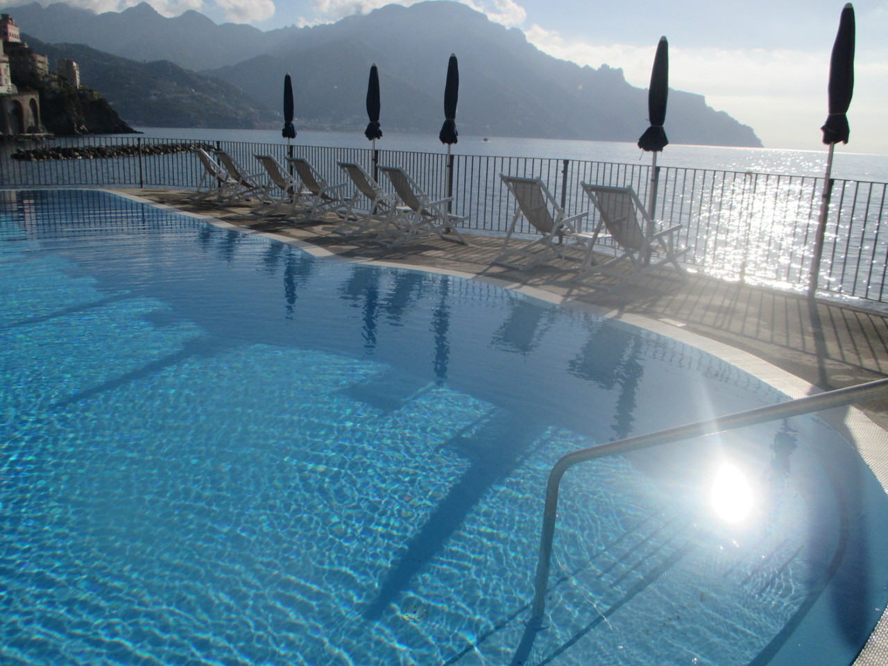 朝食はイタリアにしては種類も多く美味しい上、外のテラスで景色を見ながら食べると最高の気分になれる。